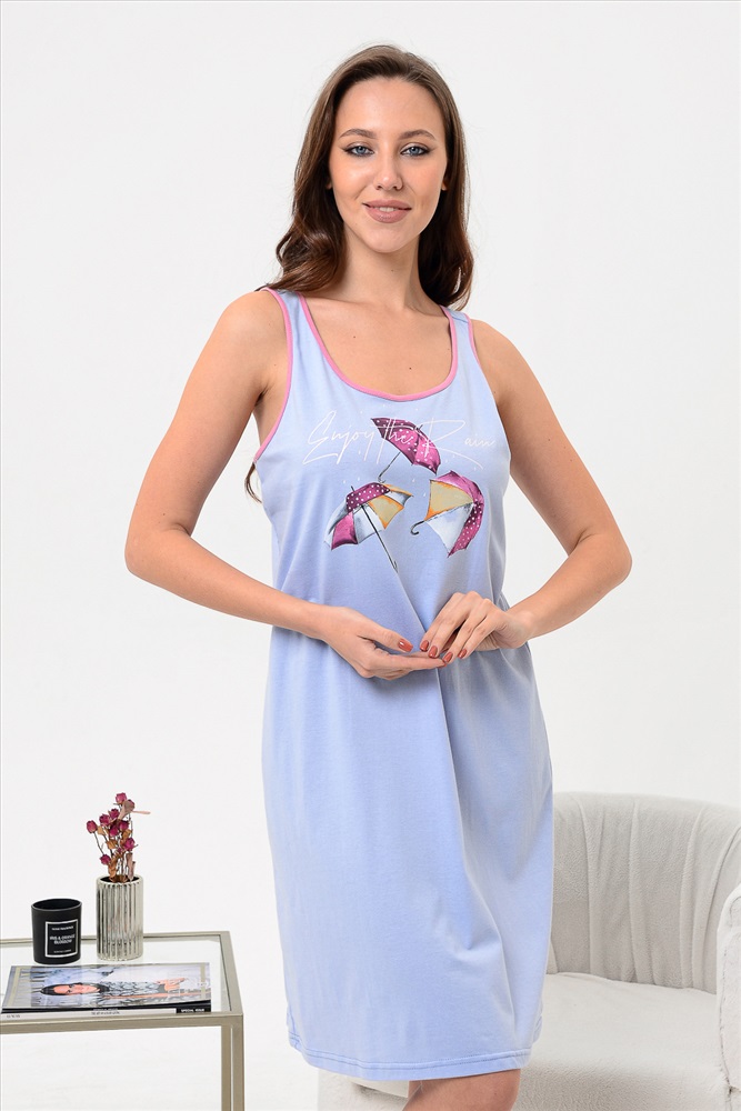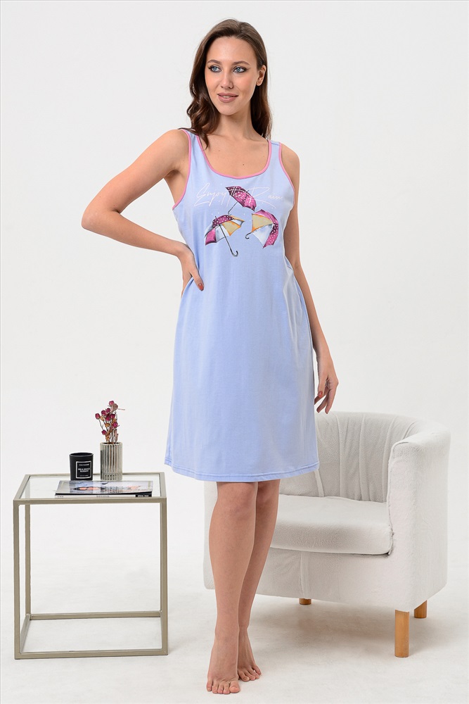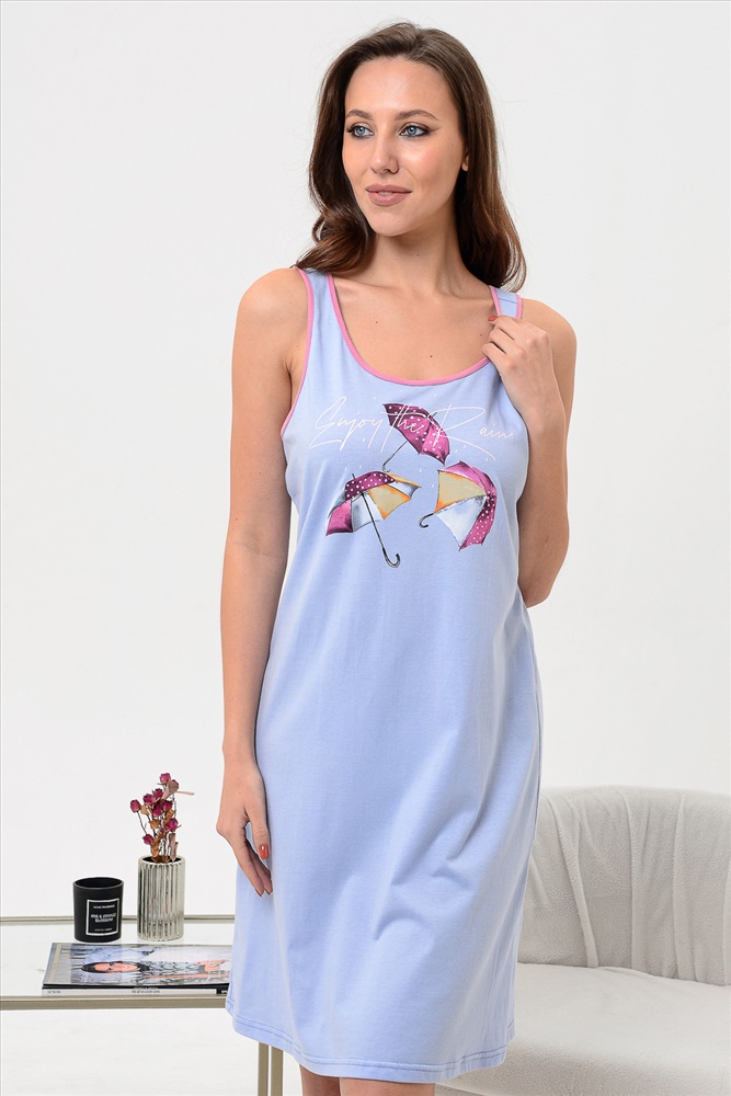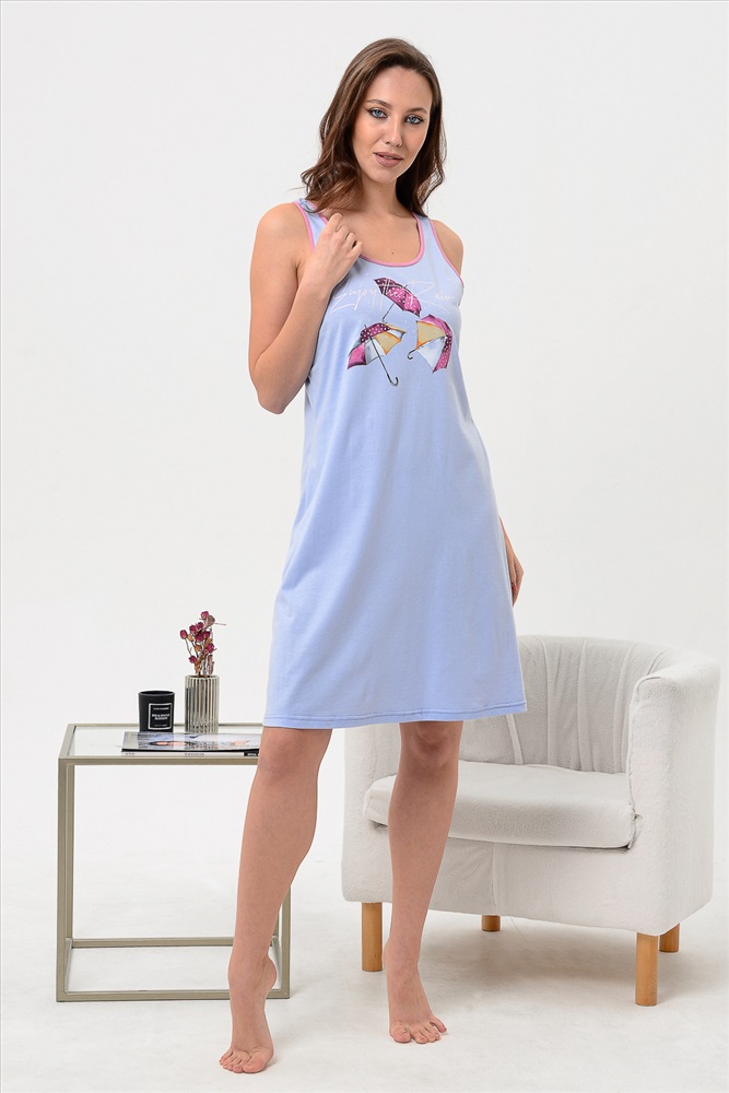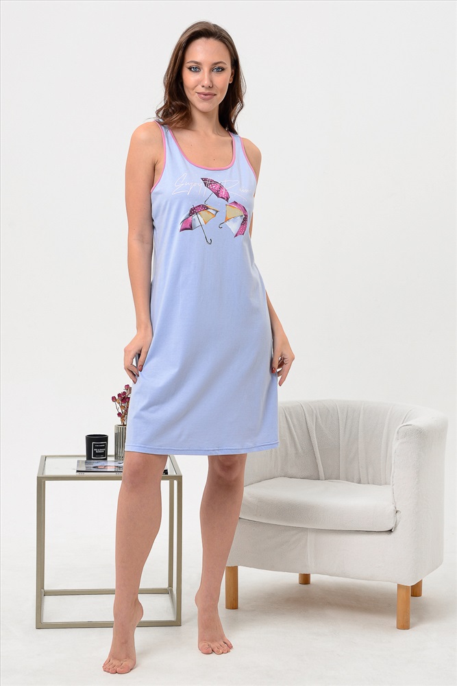 Стиль: домашний Сорочка из кулирного полотна 100% хлопок. Вырез горловины круглый, спина открытая на бретелях, низ подогнут на плоскошовной машине, на полочке принт. Сорочка удобна для сна, ваше тело будет дышать за счет натурального состава ткани. Легкая в уходе.