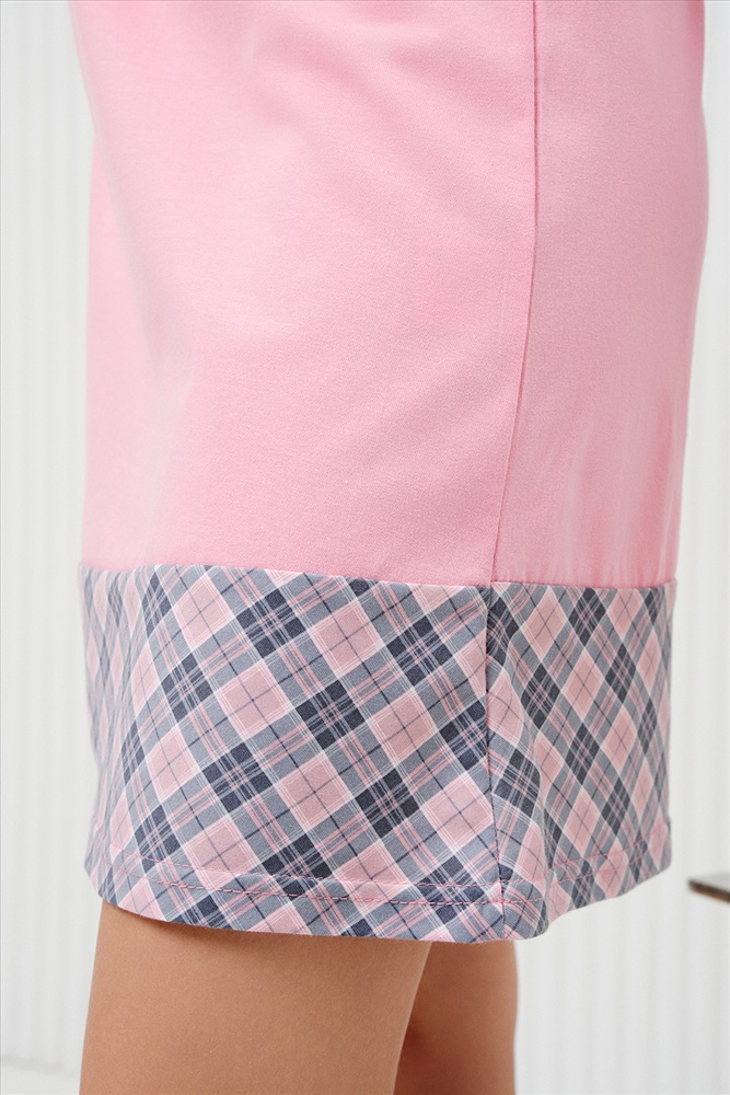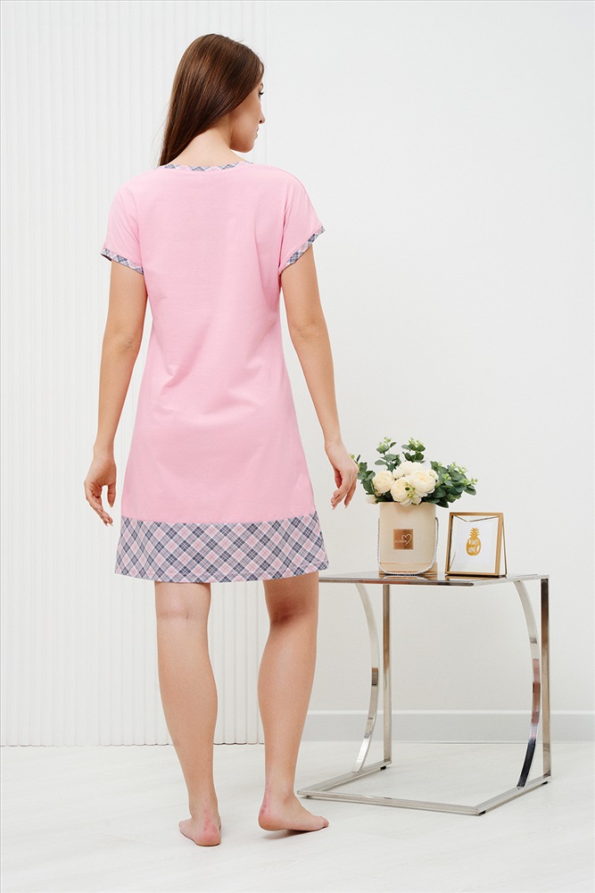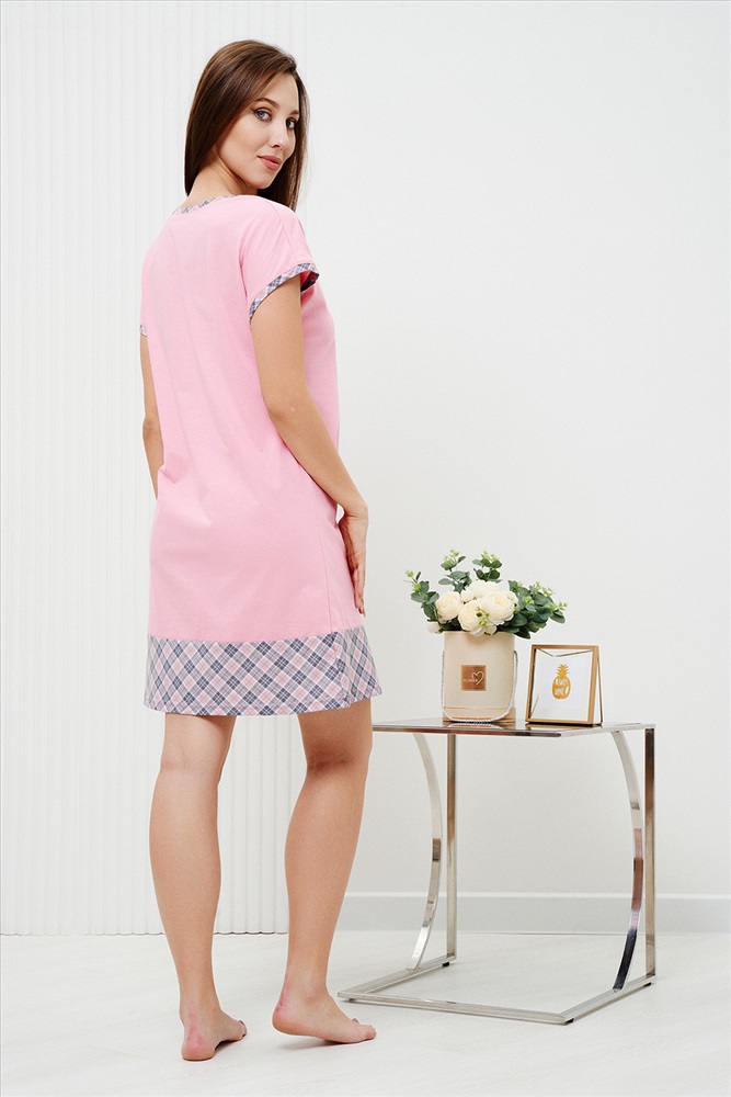 Состав: 100% хлопок Модель: Сорочка 42307 Тип товара: сорочка Материал: кулирка | кулирка Бренд: Натали Суслова Длина: средняя длина Назначение: для дома НДС: 5% Отделка: с печатью Рисунок: клетка | надпись Рукав: короткий рукав Сезонность: лето | осень | весна | зима Силуэт: трапеция Стиль: домашний Сорочка женская из кулирного полотна, состав 100% хлопок. Сорочка свободного кроя, слегка расширена книзу, горловина круглая, спущенное плечо, нижняя часть туники из отделочного материала, подогнута на плоскошовной машине. В этой сорочке вам будет удобно и уютно, легкая в уходе. Таблица размеров и веса