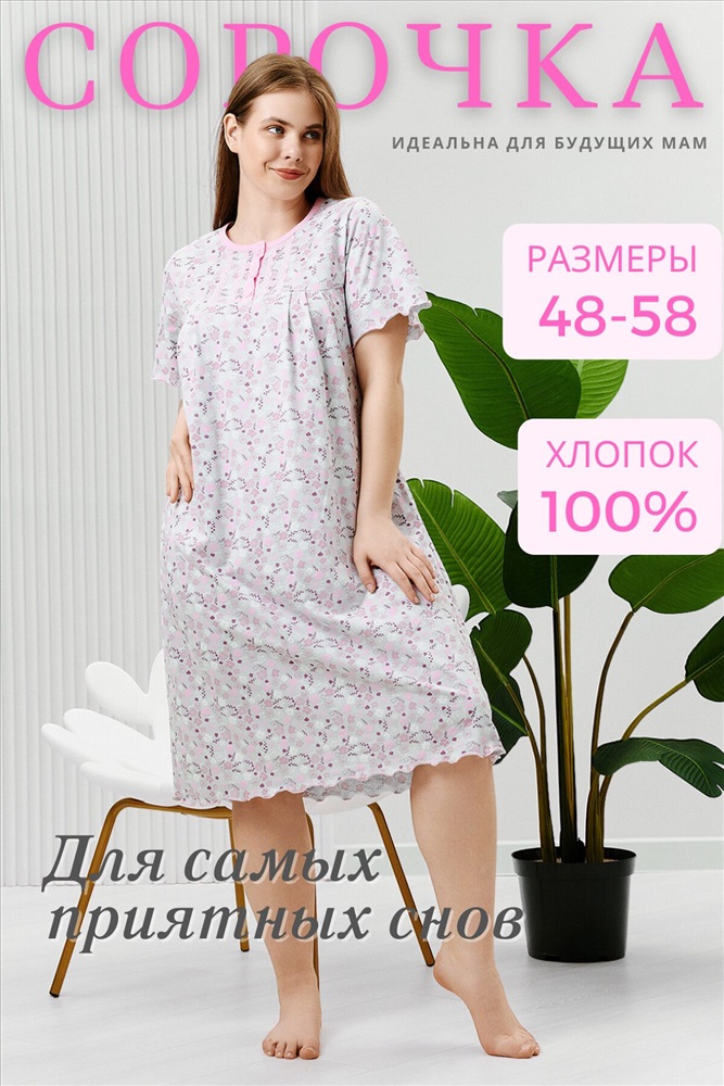 Страна производства: Россия Сорочка женская из кулирного полотна с планкой на пуговицах и отделкой из кружева. Сорочка свободного кроя с защипами под кокеткой, рукава и низ сорочки обработаны декоративной строчкой. В этой сорочке вам будет удобно и комфортно во время сна. Легкая в уходе.