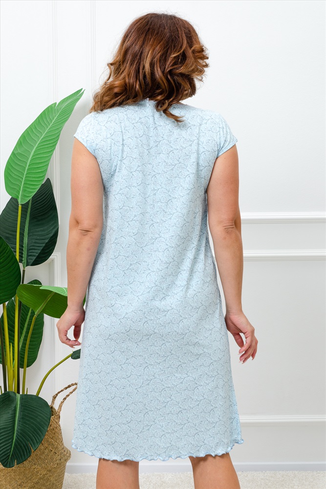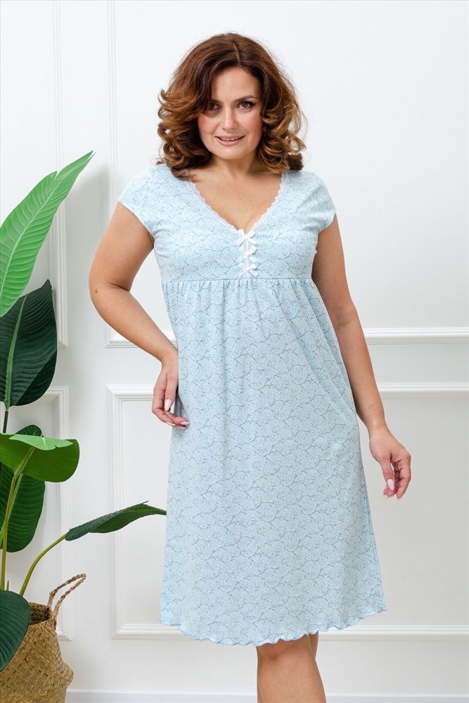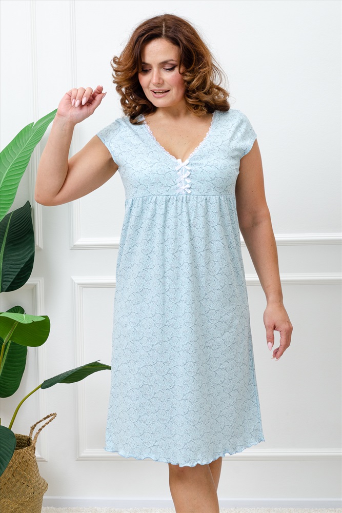 Стиль: домашний Сорочка женская из кулирного полотна, состав 100% хлопок. Горловина сорочки с отделкой из кружева, рукава обработаны окантовкой, низ сорочки обработан декоративной строчкой. Легкая в уходе.
