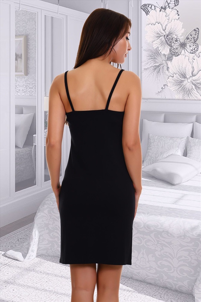 Страна производства: Россия Удобная вискозная сорочка с оригинальным оформлением зоны декольте и красивым сочетанием черного и персикового цвета