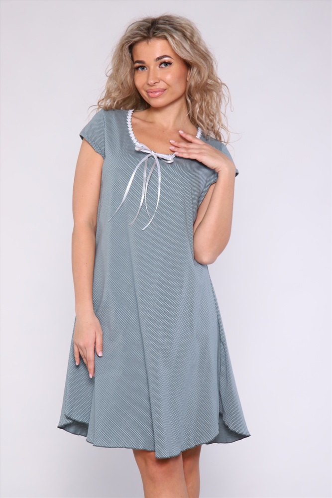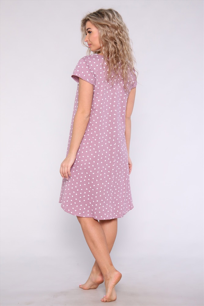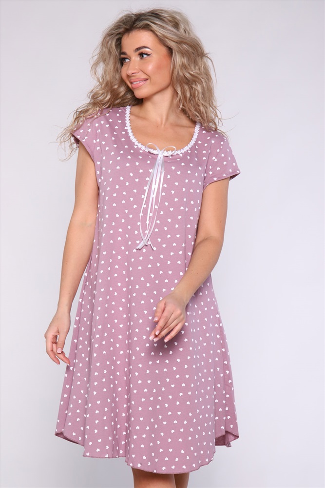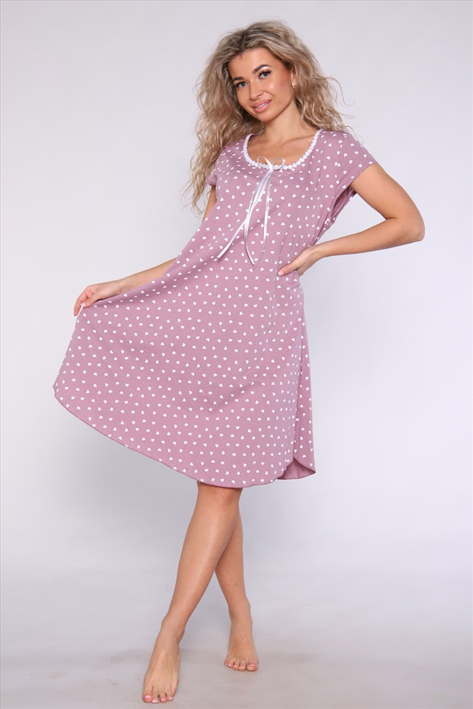 Состав: 100% хлопок Модель: Сорочка 51076 Тип товара: сорочка Материал: кулирка | кулирка Бренд: Натали Суслова Длина: средняя длина Назначение: для дома НДС: Без НДС Рисунок: горошек | сердечки Рукав: короткий рукав Сезонность: лето | осень | весна | зима Силуэт: расклешенный Стиль: домашний Сорочка из хлопковой трикотажной кулирки. Силуэт расклёшенный, горловина украшена шитьем из белых ромашек и двойным атласным бантиком, рукавчики - короткие. Таблица размеров и веса