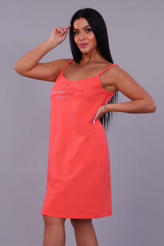 Страна производства: Россия Стильная женская сорочка на тонких бретельках, 100% хлопок - отличный выбор для отдыха. Стильный принт на полочке.
