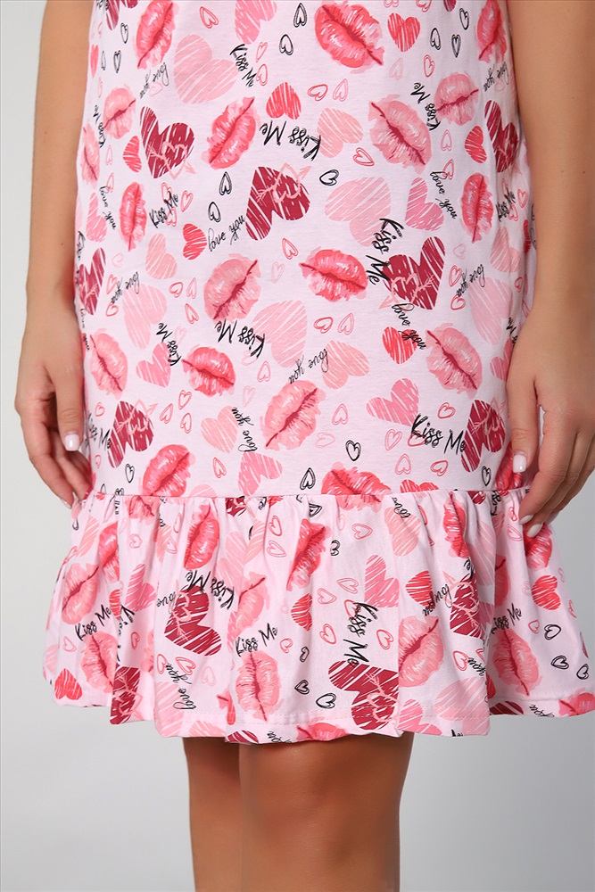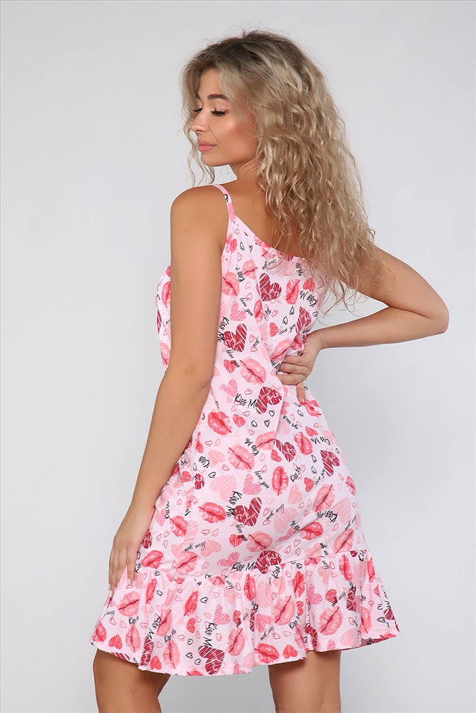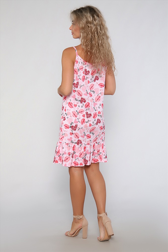 Стиль: домашний Сорочка на тонких бретелях и рюшей на сборке по низу. В зоне декольте сборка и декоративный вырез - капелька на завязках. Комфортна для повседневной носки и сна.