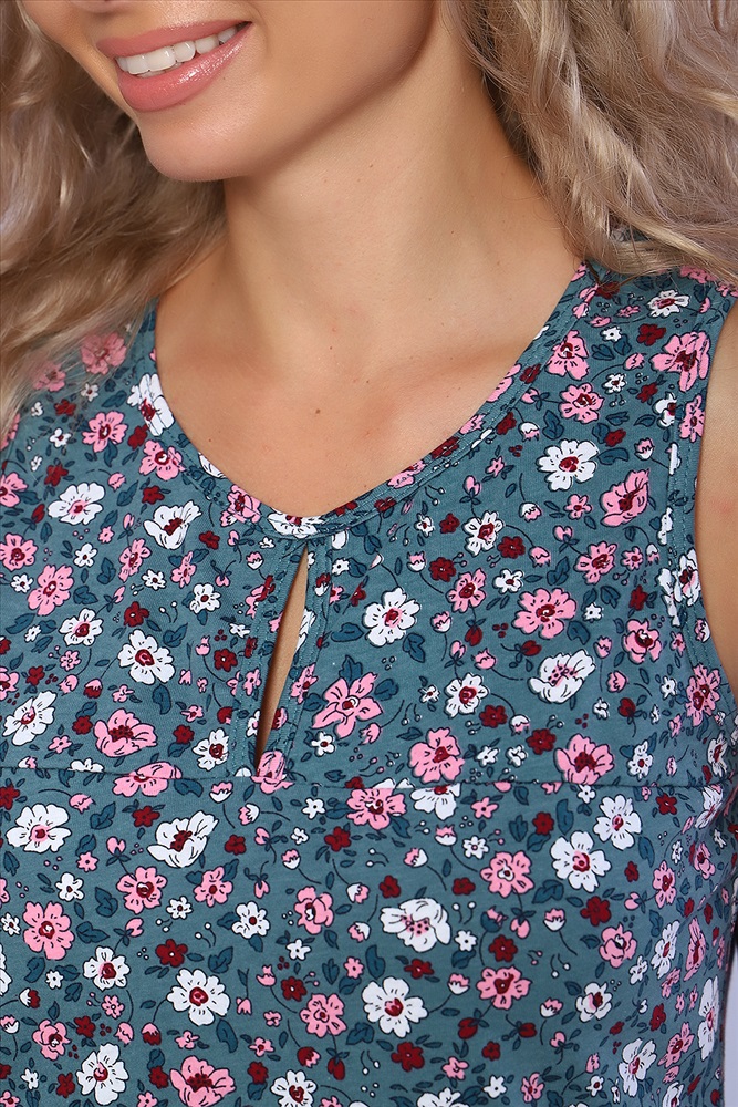 Состав: 100% хлопок Модель: Сорочка 59199 Тип товара: сорочка Материал: кулирка | кулирка Бренд: Натали Суслова Длина: средняя длина Назначение: для дома НДС: 5% Рисунок: цветы Рукав: без рукава Сезонность: лето | осень | весна | зима Силуэт: полуприлегающий Скидка: любая Стиль: домашний Сорочка полуприлегающего силуэта с декоративным вырезом. Комфортна для повседневной носки и сна. Таблица размеров и веса