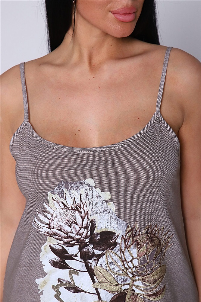 ID товара: 957456 Состав: Хлопок 100% Сезон: Демисезон Длина: Удлиненная Фасон: Прямой Рукав: без рукавов Основная ткань: Хлопок Стиль: Повседневный Вид ткани: Кулирка Страна бренда: Россия Страна производства: Россия Озорная и легкая женская сорочка на тонких бретелях сшита из натурального хлопка и поэтому необычно приятна к телу. Трапециевидный покрой подарит комфорт и легкость в движении, кроме того, именно благодаря крою сорочка отлично сидит на фигурах разных типов. Особой изюминкой сорочки является яркий принт в виде букета летних цветов, контрастирующий с основным тоном Сорочку можно использовать в качестве домашней одежды для ежедневной носки или в качестве одежды для сна. Комментарии к товару