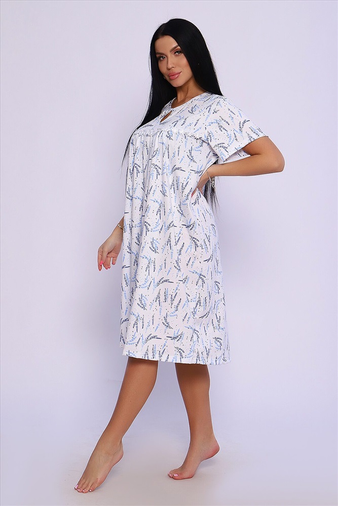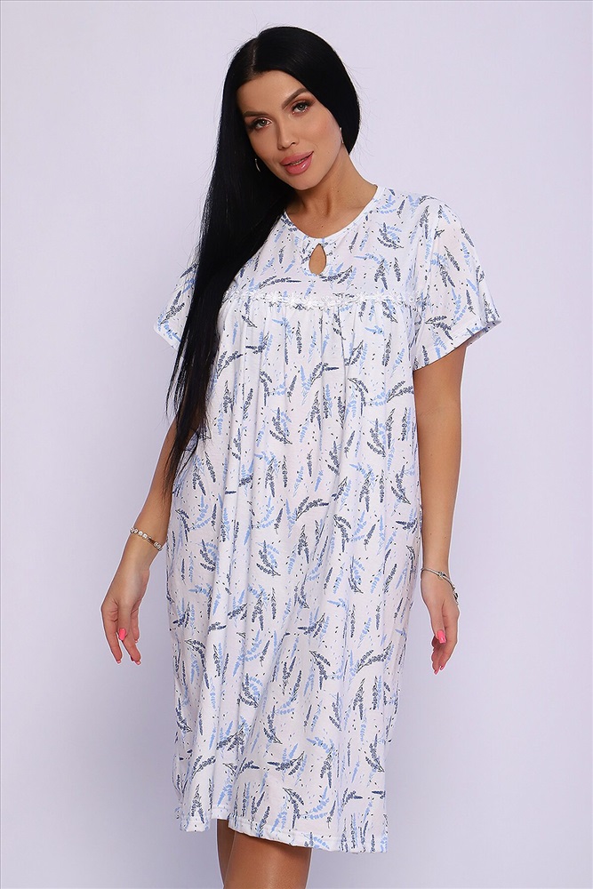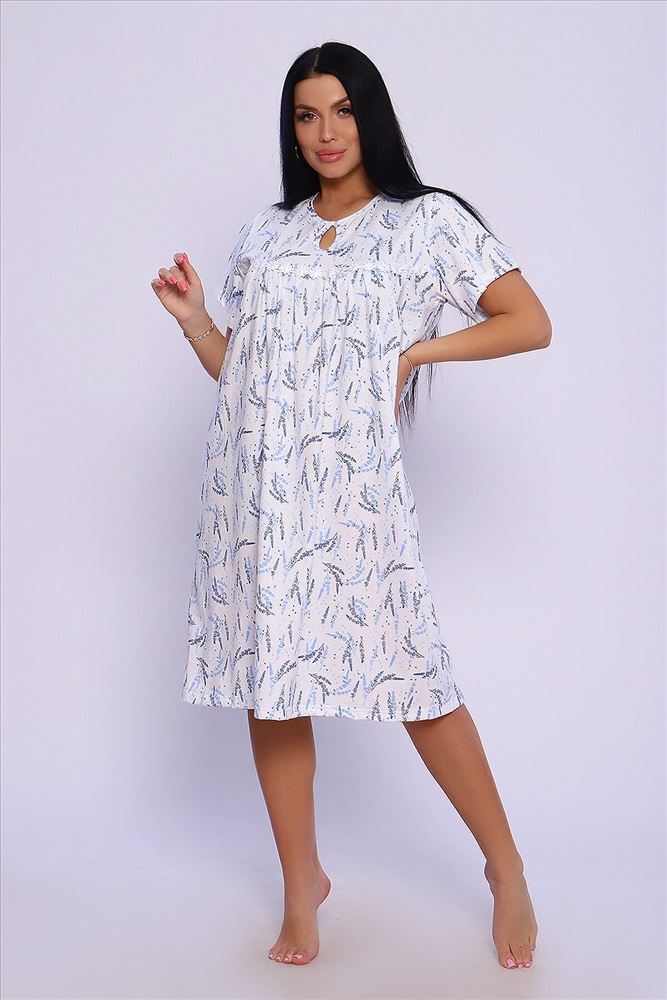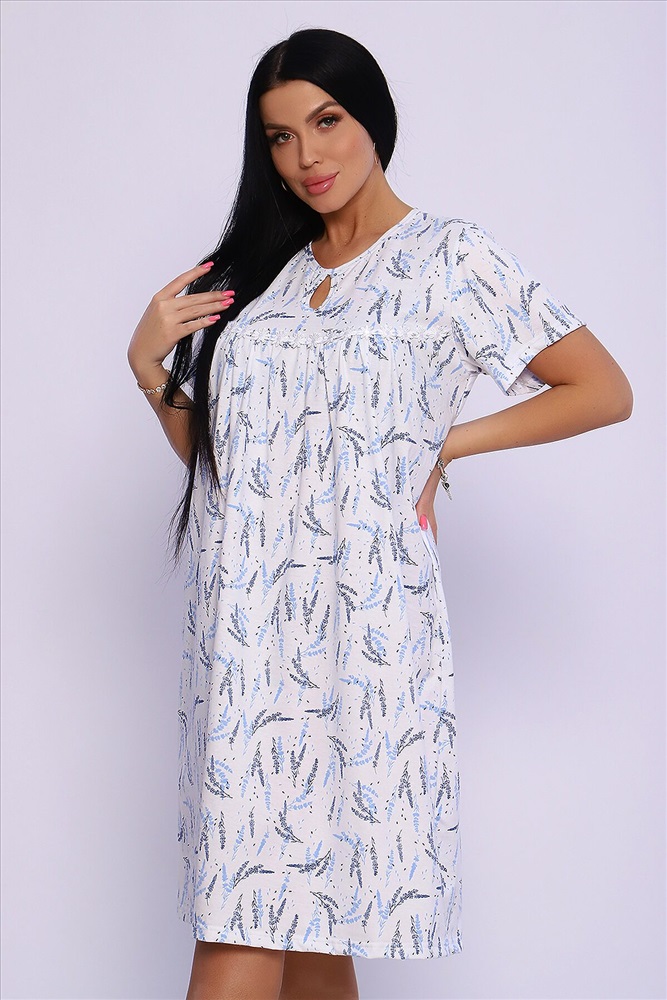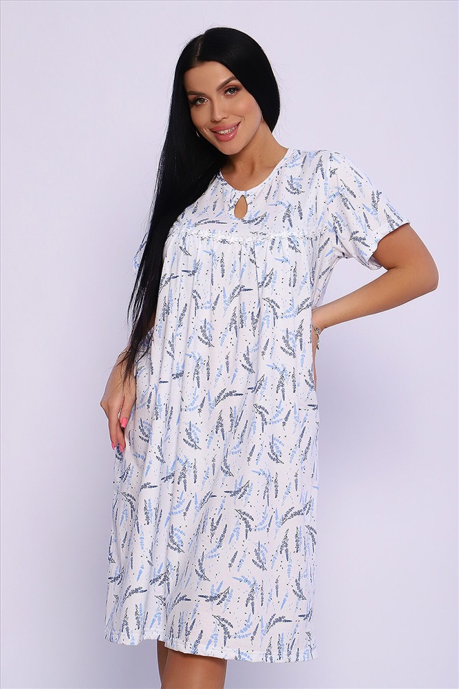 Страна производства: Россия Сорочка женская комбинированная с коротким рукавом из трикотажного полотна кулирка 100%. Полочка отрезная с кокетками. Отлично подходит для сна и отдыха.