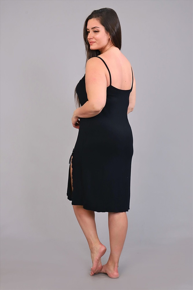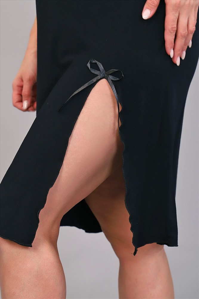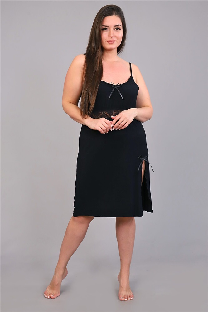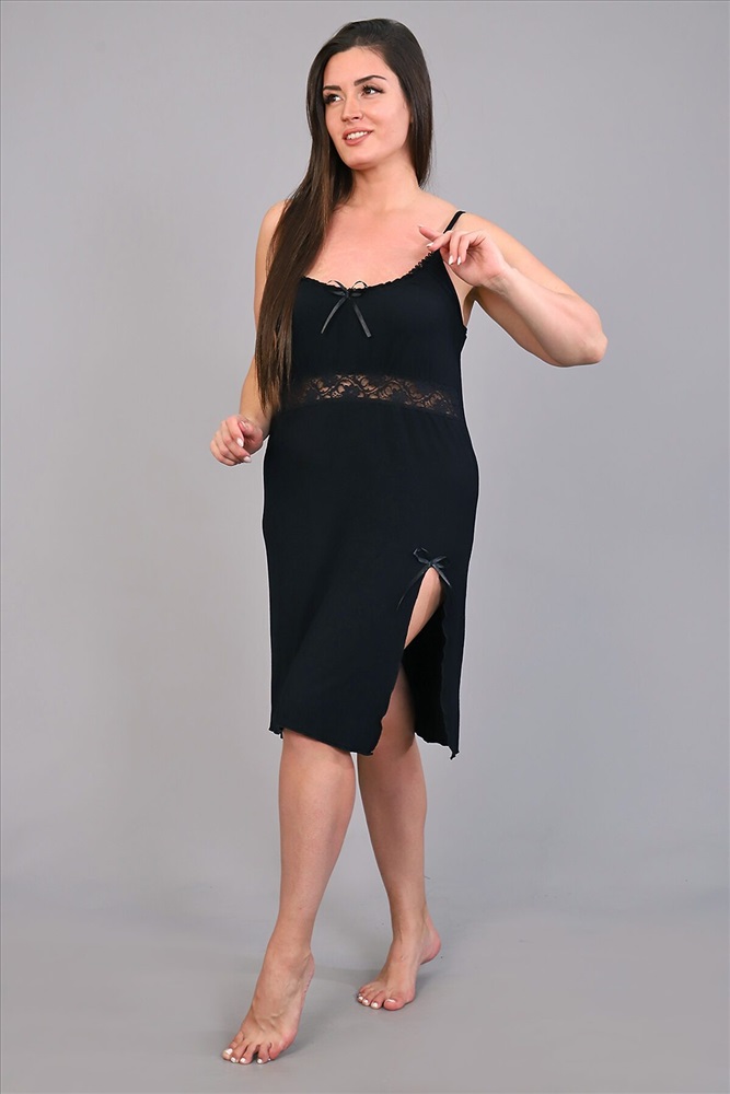Страна производства: Россия Сорочка ночная с эластичным кружевом из однотонной вискозы. Изящная модель на узких бретелях, с кружевом чуть ниже груди и разрезом на передней полочке. Декольте, разрез и низ сорочки обработаны волнистым краем. Сорочка уютная, комфортная для сна.