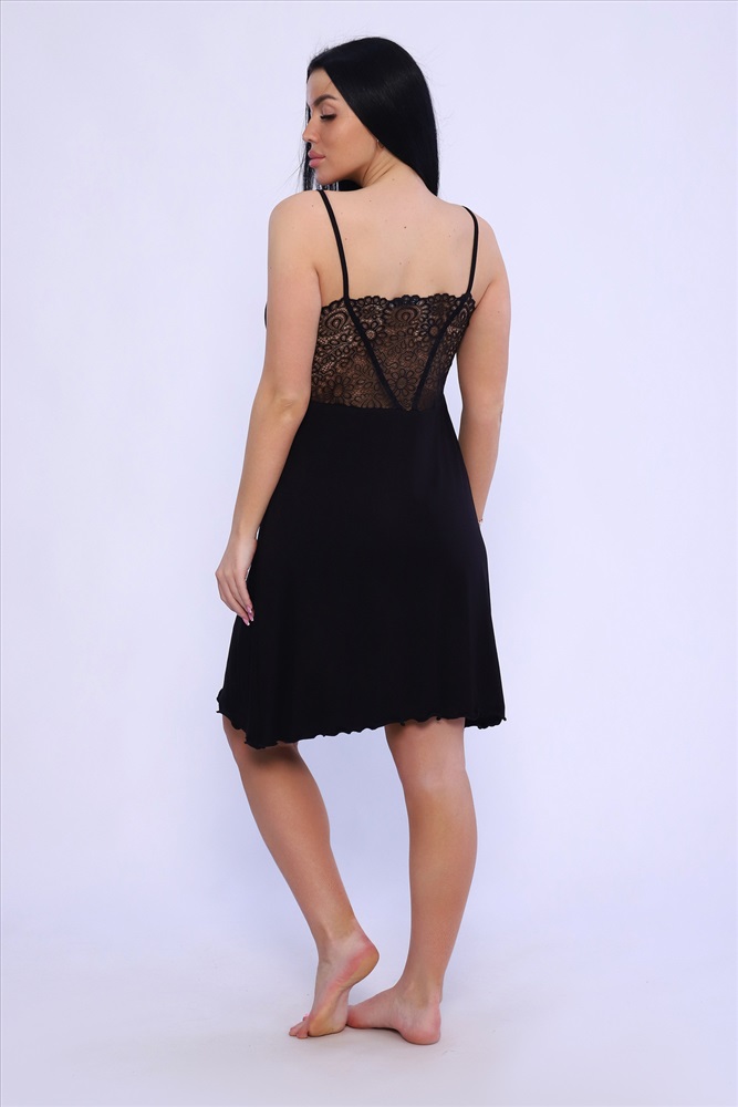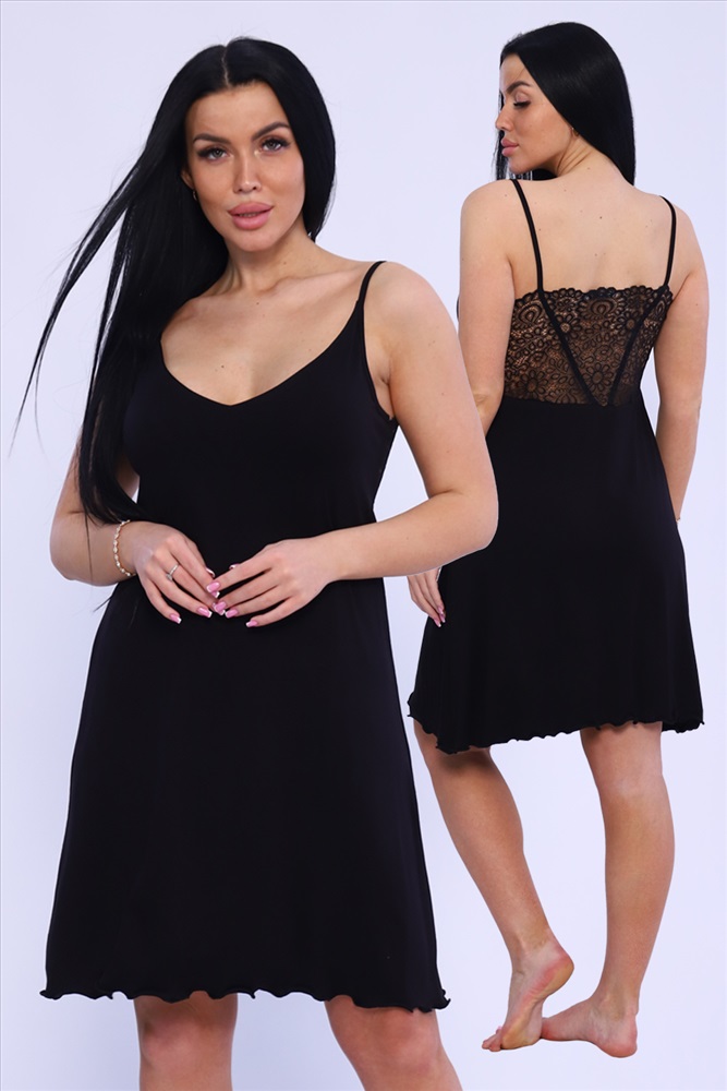 Стиль: домашний | молодежный Сорочка женская на узких бретелях с широким стрейч-кружевом на спинке. Модель приталенного силуэта, на груди фигурный V-образный вырез, удобный двойной лиф. Сорочка-миди женственная, стильная, из приятной к телу вискозы. Ткань отличается мягкостью и легкостью, а благодаря наличию в составе лайкры обладает способностью растягиваться и возвращаться к первоначальному размеру. Длина изделия в таблице измерений указана от наивысшей точки плеча.