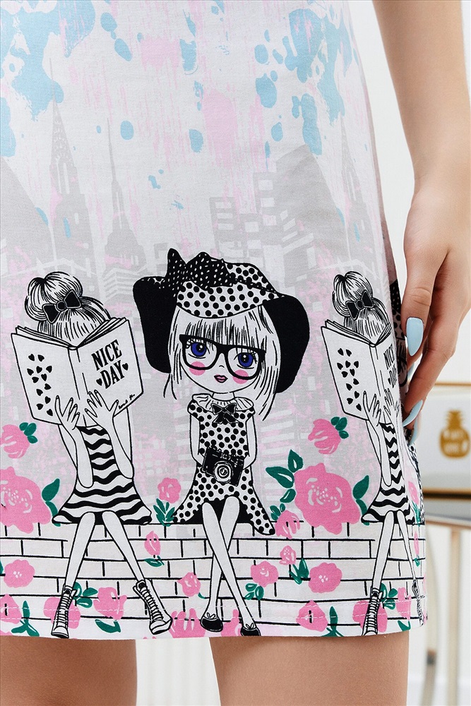 Страна производства: Россия Сорочка на бретелях полуприлегающего силуэта, длиной выше колена. На горловине полочки расположены декоративные элементы. Горловина, бретели и декоративные элементы на полочке обработаны бейкой из отделочного полотна.