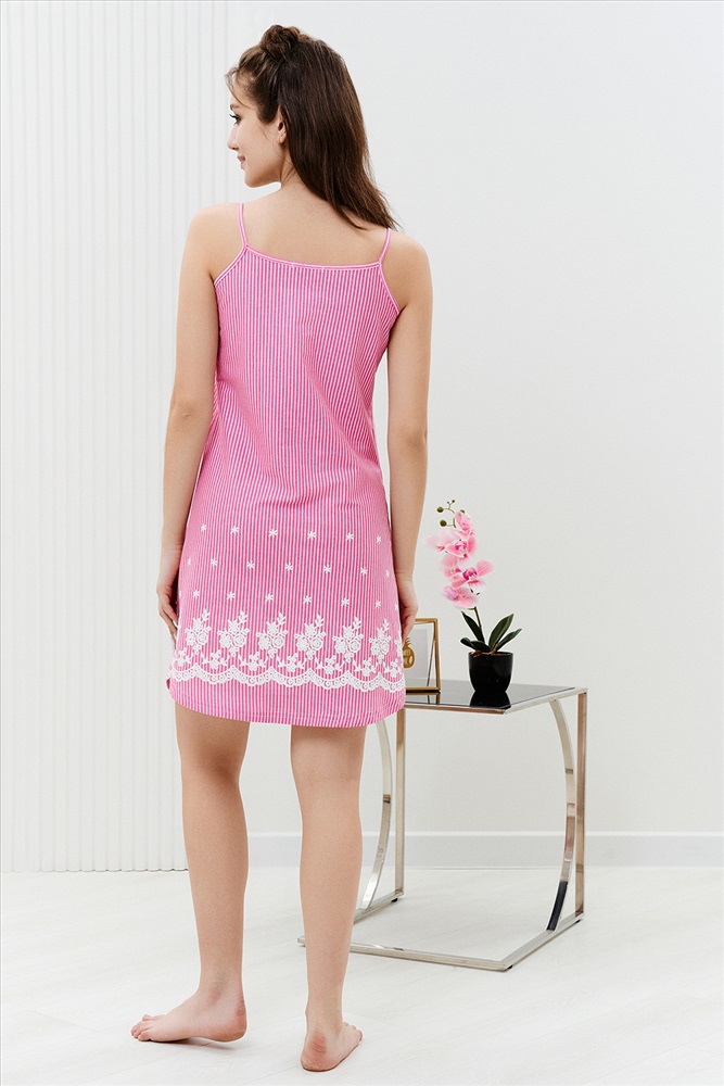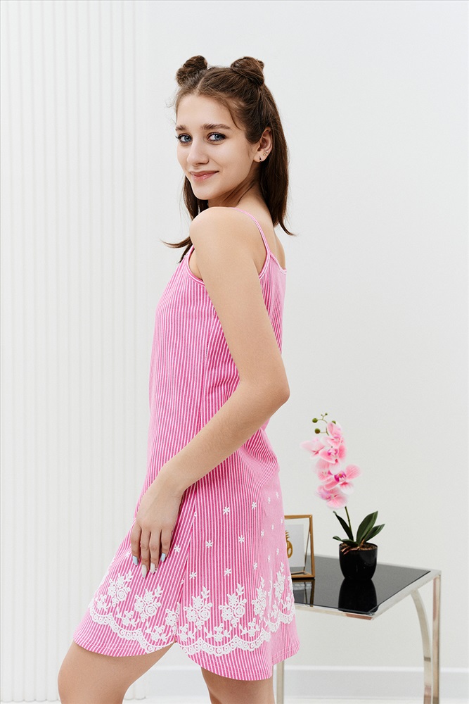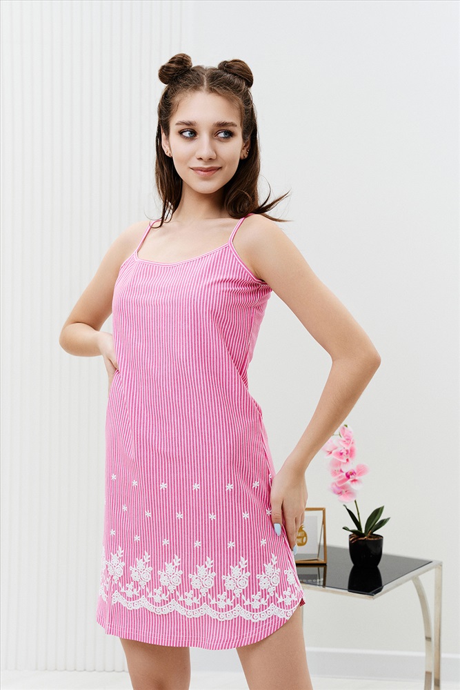 Состав: хлопок 100% Модель: Сорочка 8322 Тип товара: сорочка Материал: кулирка | кулирка Бренд: Натали Суслова Длина: средняя длина Назначение: для дома НДС: 22% Рисунок: узоры Рукав: без рукава Сезонность: лето | осень | весна | зима Силуэт: полуприлегающий Стиль: домашний Сорочка на бретелях полуприлегающего силуэта, с фигурной линией низа, длиной выше колена. На полочке внизу обработан декоративный разрез. Проймы, бретели и разрез на полочке обработаны бейкой из основного полотна. Таблица размеров и веса