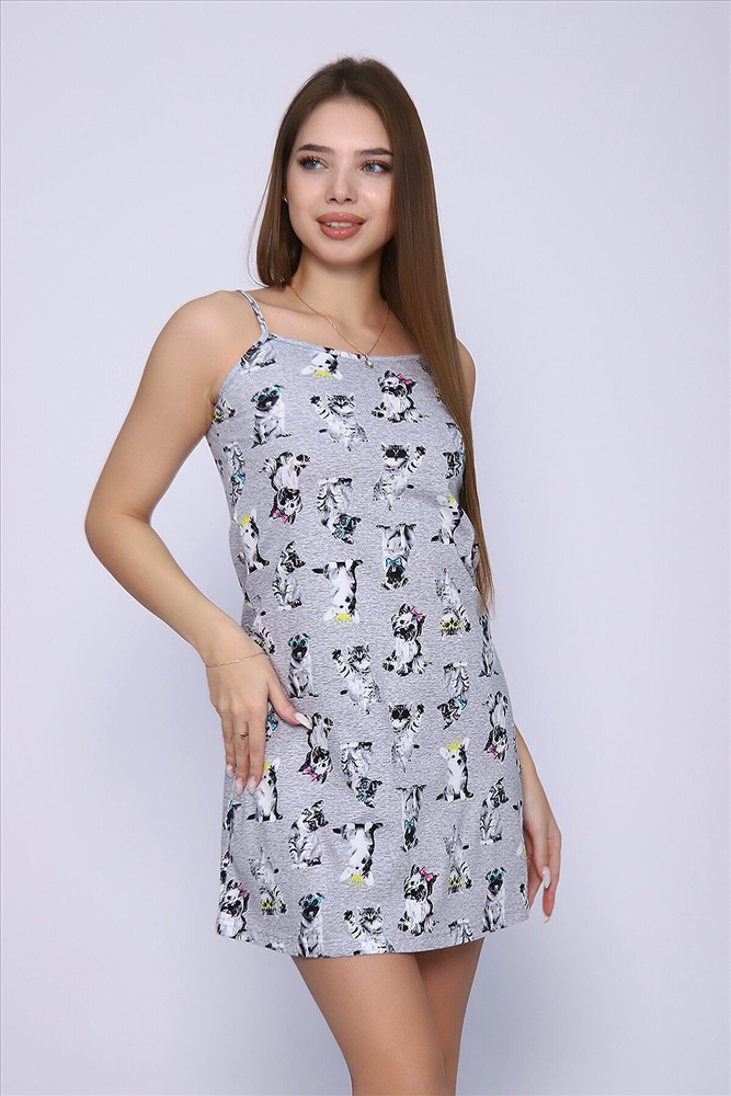 Страна производства: Россия Сорочка женская на бретелях. Данная модель выполнена из трикотажного полотна кулирка (хлопок 100%). Отличная модель для дома и сна.
