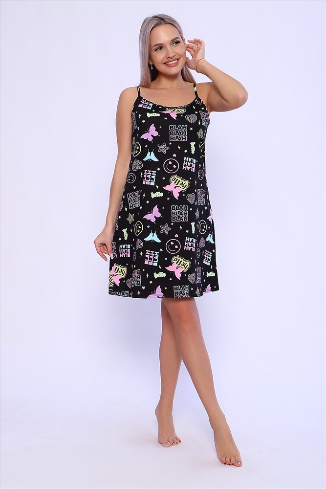 Страна производства: Россия Сорочка женская на бретелях. Данная модель выполнена из трикотажного полотна кулирка (хлопок 100%). Отлично подходит для сна и отдыха.