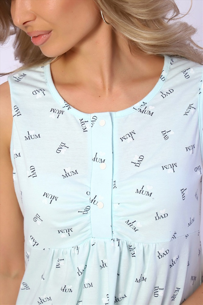 Страна производства: Россия Женская сорочка без рукавов. Данная модель выполнена из трикотажного полотна кулирка (хлопок 100%). Полочка отрезная под грудью, шов фигурный. Верхняя часть полочки (лиф) имеет сборку по центру груди и планку на кнопках. Верх нижней части полочки по центру также со сборкой. Горловина и пройма изделия обработаны окантовкой из основной ткани. Отлично подходит для беременных и кормящих мам.