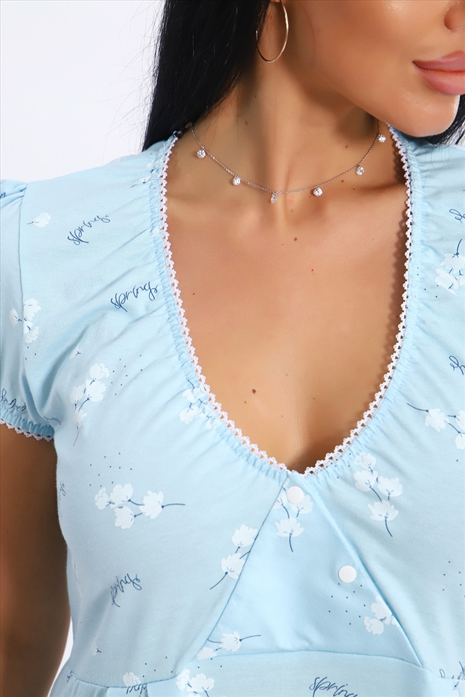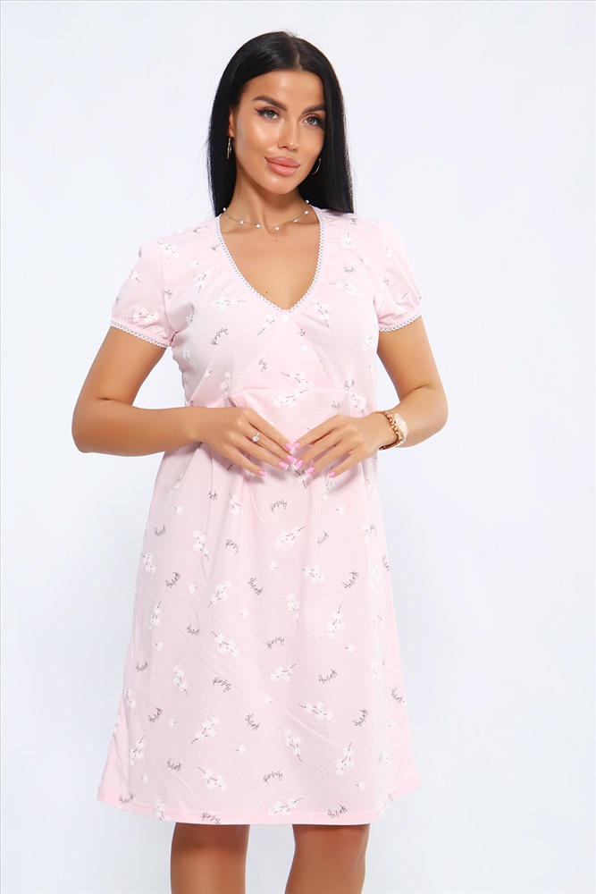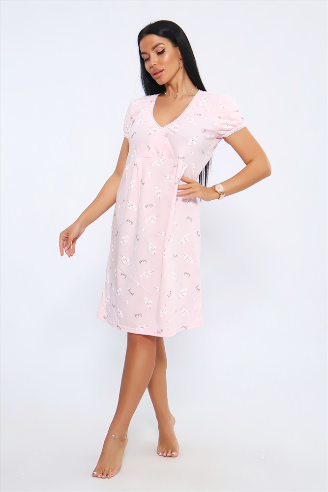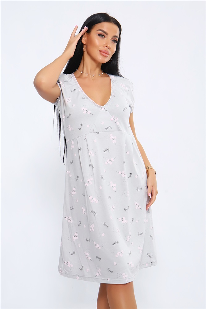 Состав: хлопок 100% Модель: Сорочка 88089 Тип товара: сорочка Материал: кулирка | кулирка Бренд: Натали Суслова Назначение: для дома НДС: Без НДС Отделка: с кружевом Рисунок: цветы Рукав: короткий рукав Сезонность: лето | осень | весна | зима Силуэт: свободный Стиль: домашний Женская сорочка с V-образным вырезом на кнопках. Отличный вариант для сна и отдыха, идеально подходит для кормления малыша. Данная модель выполнена из приятного к телу материала, трикотажного полотна кулирка (100% хлопок). Пройма и горловина обработана кружевной резинкой. Таблица размеров и веса