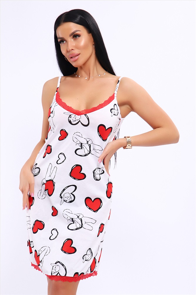 Состав: хлопок 100% Модель: Сорочка 88095 Тип товара: сорочка Материал: кулирка | кулирка Бренд: Натали Суслова Длина: короткий Назначение: для дома НДС: Без НДС Отделка: с кружевом Рисунок: сердечки | зверюшки Рукав: без рукава Сезонность: лето | осень | весна | зима Силуэт: полуприлегающий Скидка: любая | от 10% и больше | от 30% и больше Стиль: домашний Сорочка женская с V- образным вырезом на бретелях. Данная модель выполнена из трикотажного полотна кулирка (хлопок 100%). Горловина обработана эластичным кружевом. Очень приятная и милая моделька порадует вас. Таблица размеров и веса