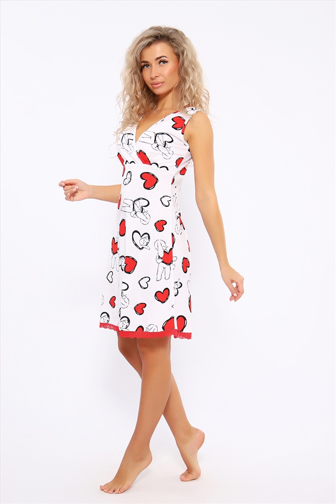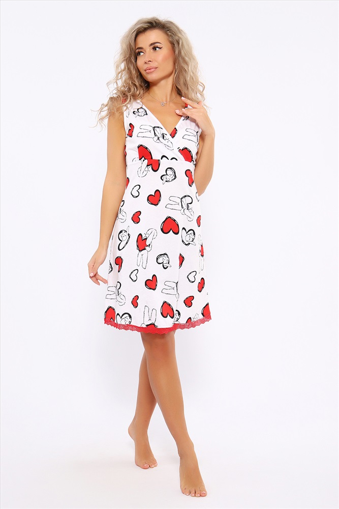 Состав: хлопок 100% Модель: Сорочка 88127 Тип товара: сорочка Материал: кулирка | кулирка Бренд: Натали Суслова Назначение: для дома НДС: Без НДС Отделка: с кружевом Рисунок: сердечки | зверюшки Рукав: без рукава Сезонность: лето | осень | весна | зима Силуэт: свободный Стиль: домашний Сорочка женская с V-оборазным вырезом, без рукава с запахом. Данная модель выполнена из трикотажного полотна кулирка (хлопок 100%). Горловина и пройма обработана окантовкой из основной ткани. Низ изделия украшен эластичным кружевом. Подходит для кормления малыша. Таблица размеров и веса