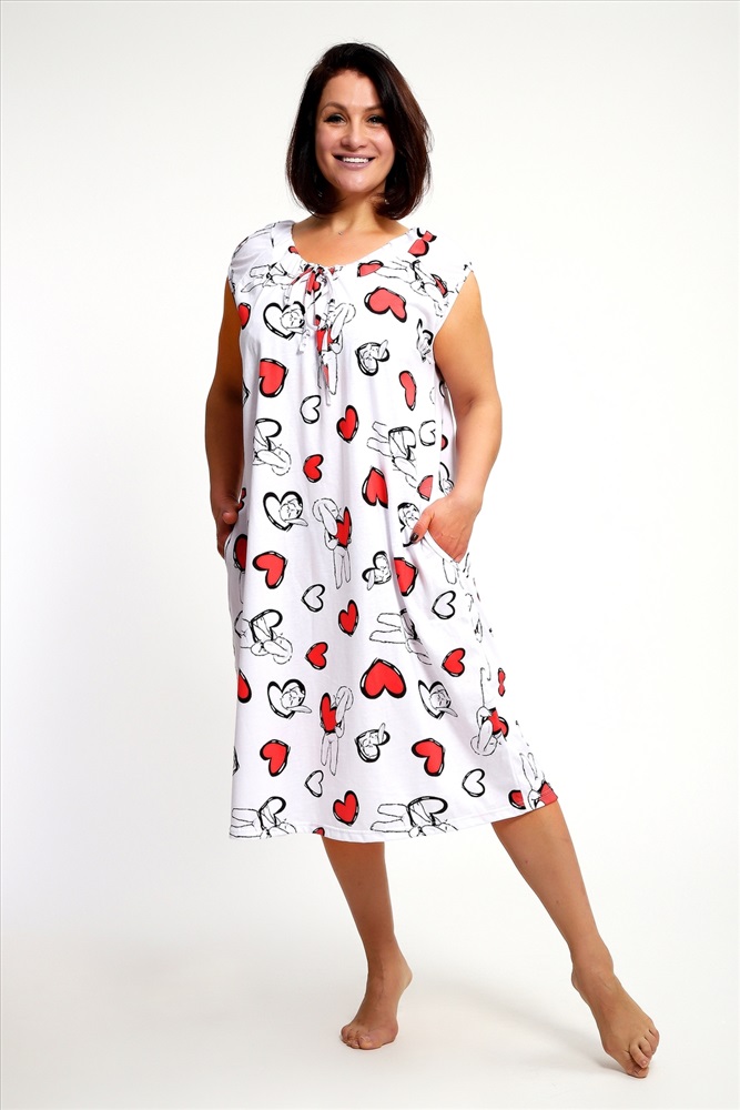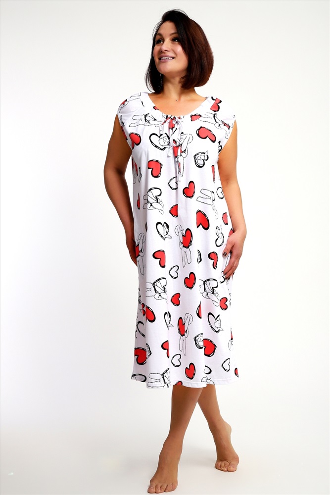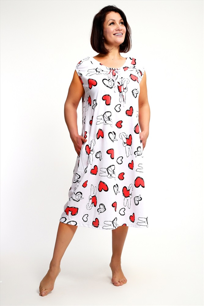 Состав: хлопок 100% Модель: Сорочка 88131 Тип товара: сорочка Материал: кулирка | кулирка Бренд: Натали Суслова Длина: средняя длина Карман: без карманов Назначение: для дома НДС: Без НДС Отделка: со шнурком Рисунок: сердечки Рукав: короткий рукав Сезонность: лето | осень | весна | зима Силуэт: прямой | свободный Скидка: любая | от 10% и больше Стиль: домашний Воротник: без воротника Застежка: без застежки Сорочка женское с коротким рукавом и кулиской по горловине. Данная модель выполнена из трикотажного полотна кулирка ( хлопок 100%). Отличная модель для дома, свободный крой не будет стеснять ваши движения, очень комфортная и приятная к телу ткань порадует вас. Таблица размеров и веса