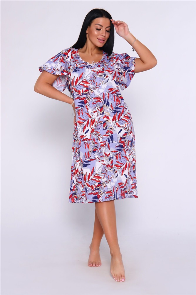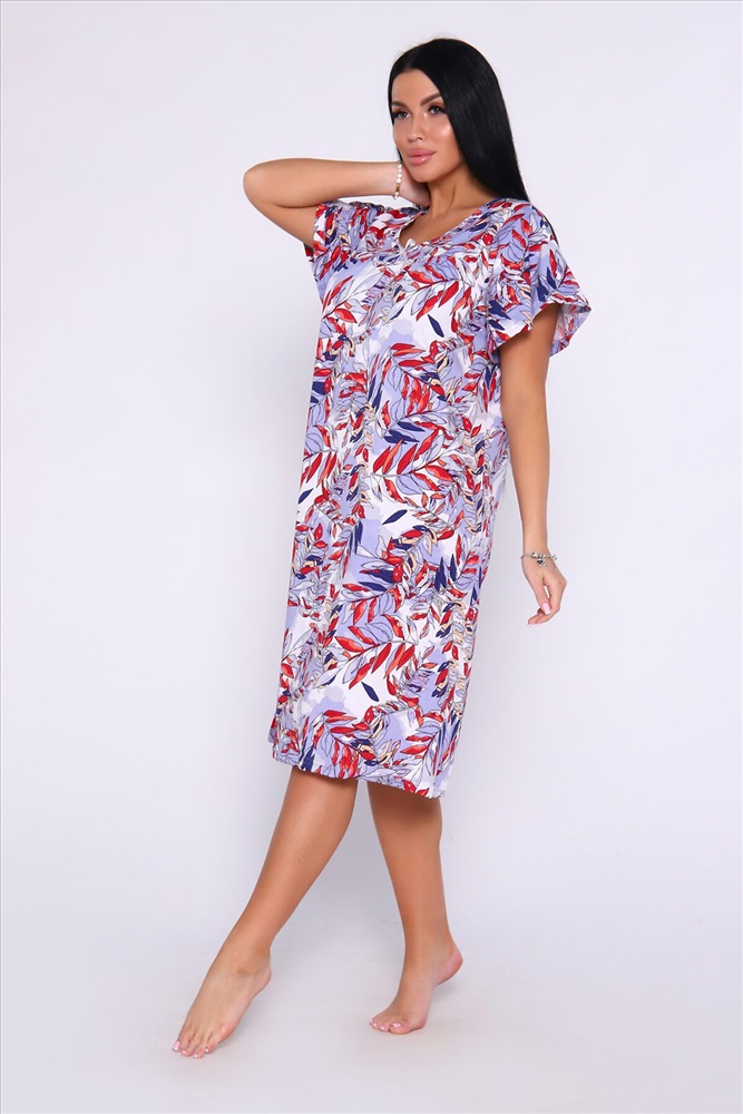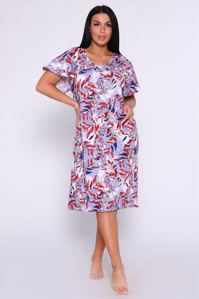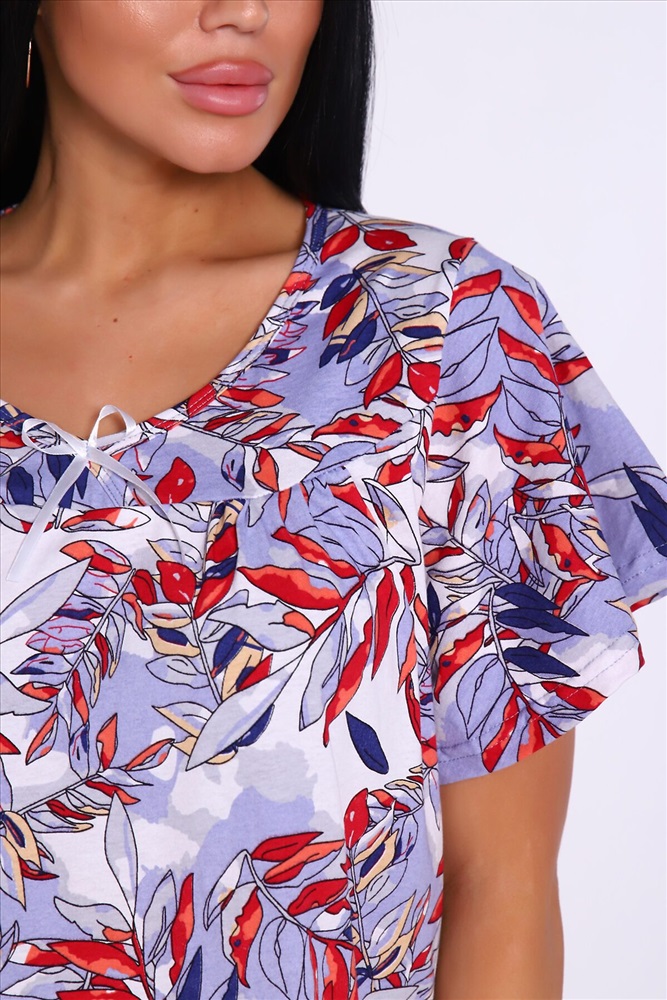 ID товара: 957455 Состав: 100% Хлопок Сезон: Демисезон Длина: Удлиненная Фасон: Свободный крой Рукав: короткие Основная ткань: Хлопок Стиль: Повседневный Вид ткани: Кулирка Страна бренда: Россия Страна производства: Россия Свободная сорочка с короткими рукавами - крылышками. Полочка с отрезной кокеткой, украшена атласным бантиком по центру выреза. Комфортна для повседневной носки и сна. Комментарии к товару