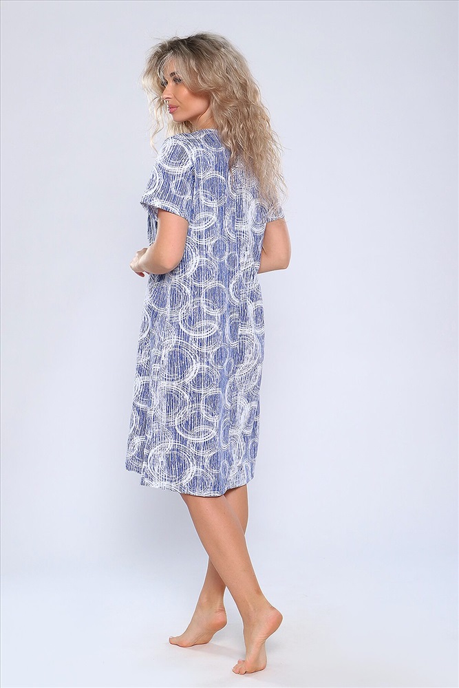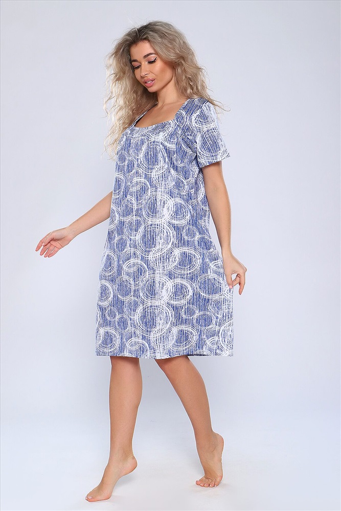 ID товара: 952893 Состав: 100% Хлопок Сезон: Демисезон Длина: Удлиненная Фасон: Прямой Рукав: короткие Основная ткань: Хлопок Стиль: Повседневный Вид ткани: Кулирка Страна бренда: Россия Страна производства: Россия Свободная сорочка с короткими рукавами и квадратным вырезом горловины. На полочке складки над грудью. Комфортна для повседневной носки и сна. Комментарии к товару