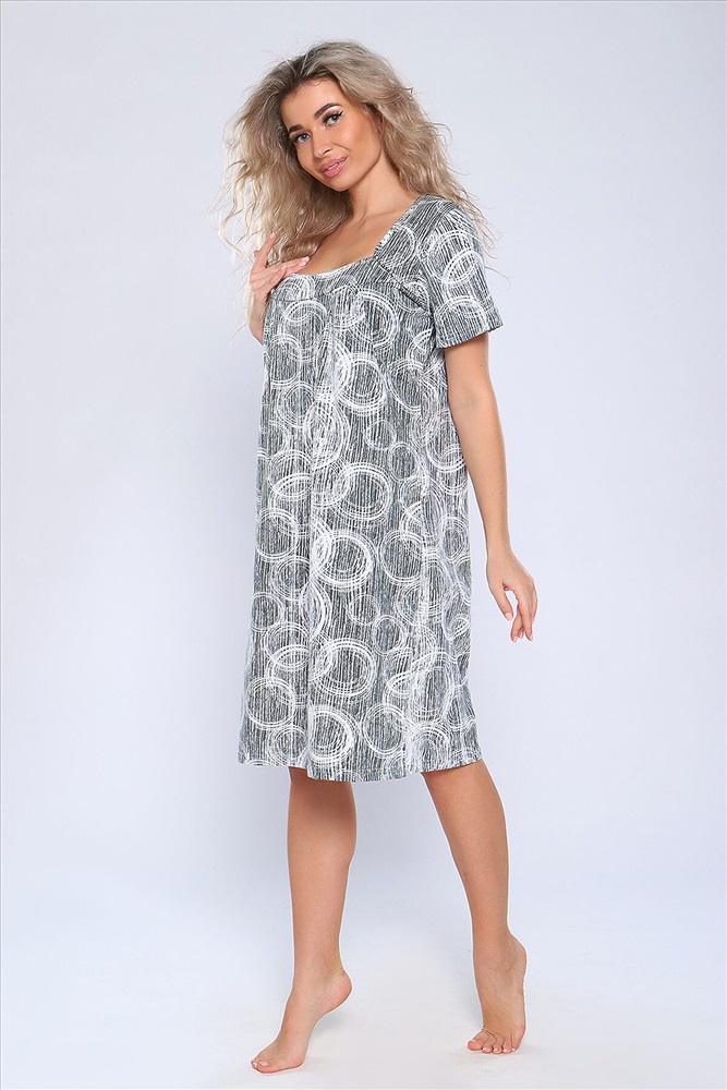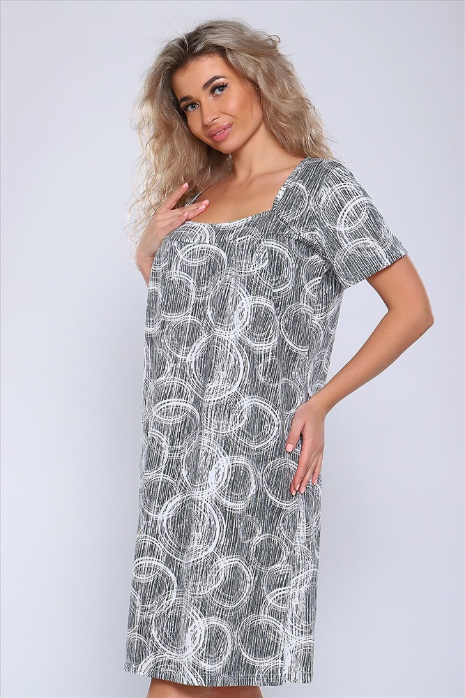 Страна производства: Россия Свободная сорочка с короткими рукавами и квадратным вырезом горловины. На полочке складки над грудью. Комфортна для повседневной носки и сна.