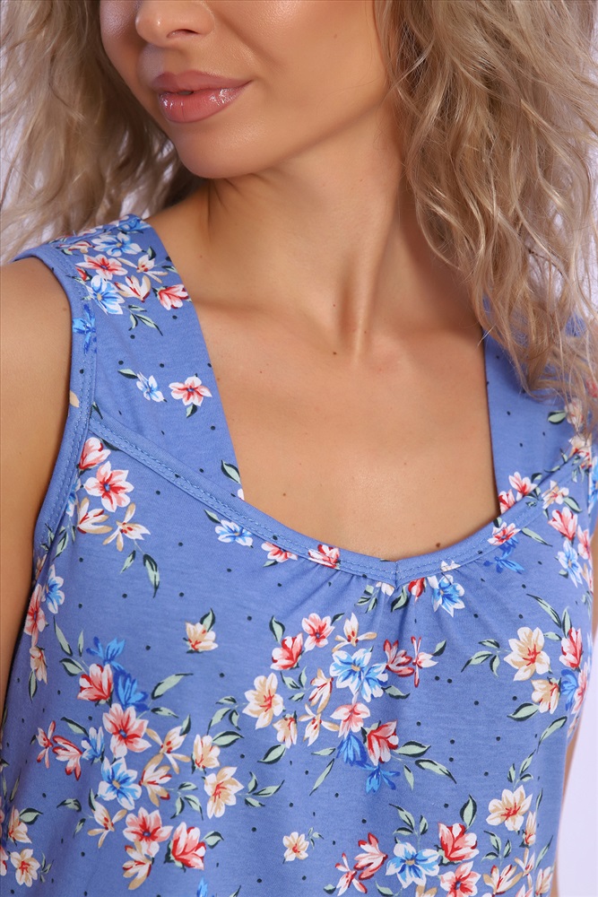 Состав: Хлопок 100% Модель: Сорочка 89400 Тип товара: сорочка Материал: кулирка | кулирка Бренд: Натали Суслова Длина: средняя длина Назначение: для дома НДС: 5% Рисунок: цветы Рукав: без рукава Сезонность: лето | осень | весна | зима Силуэт: полуприлегающий Скидка: любая Стиль: домашний Сорочка полуприлегающего силуэта на широких бретелях и со сборкой по центру выреза декольте. Таблица размеров и веса