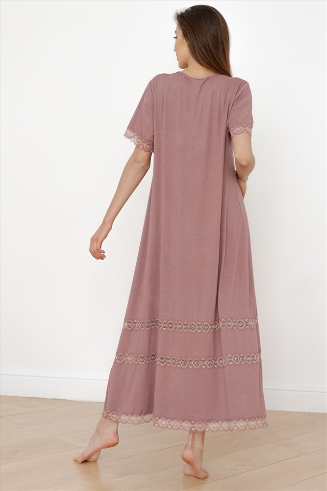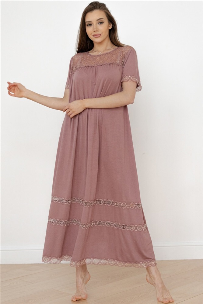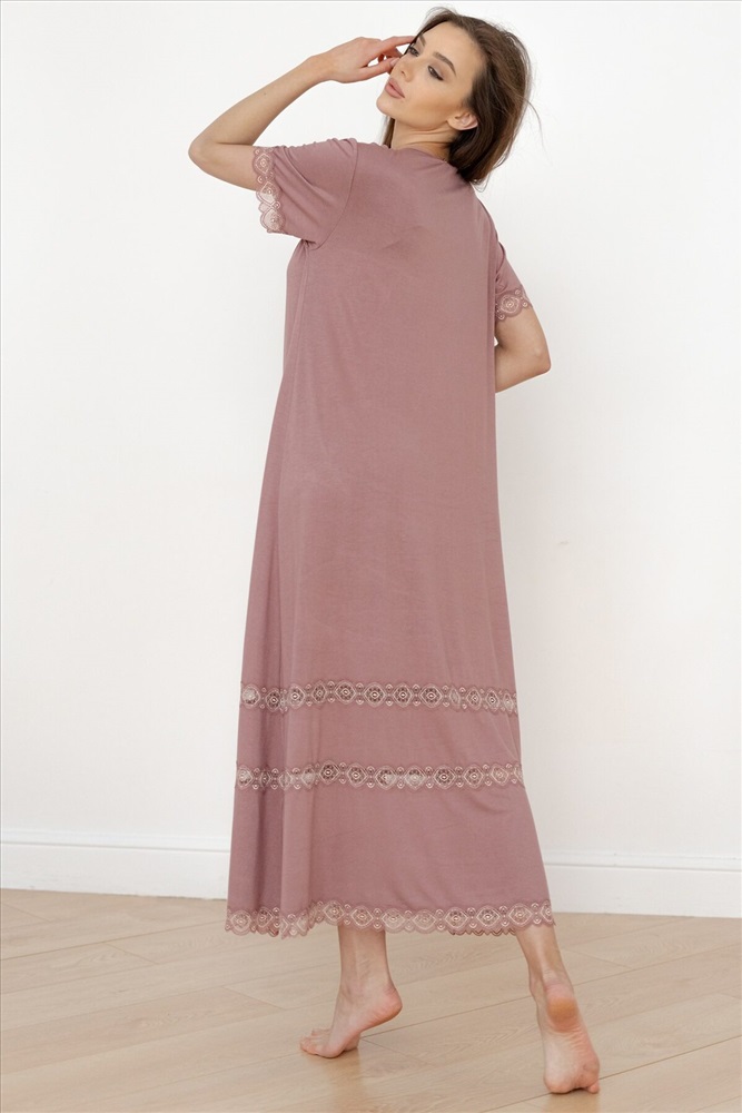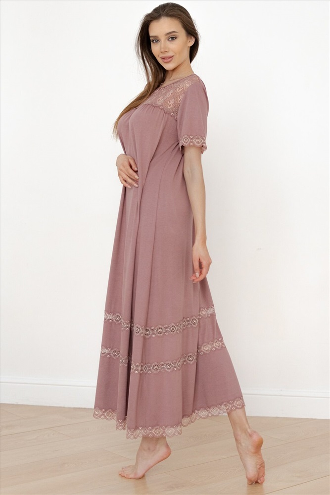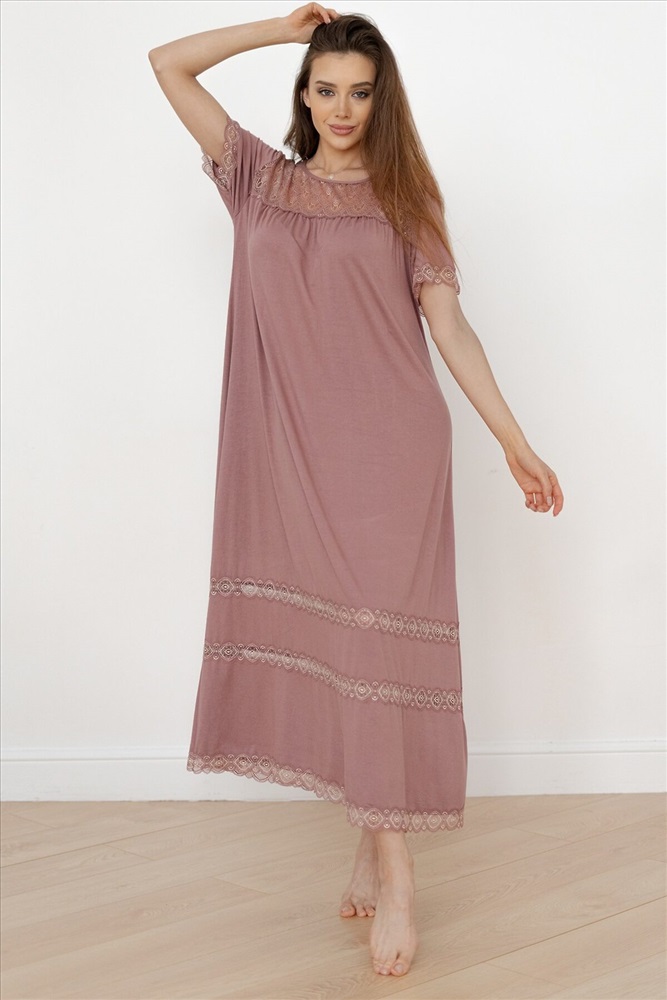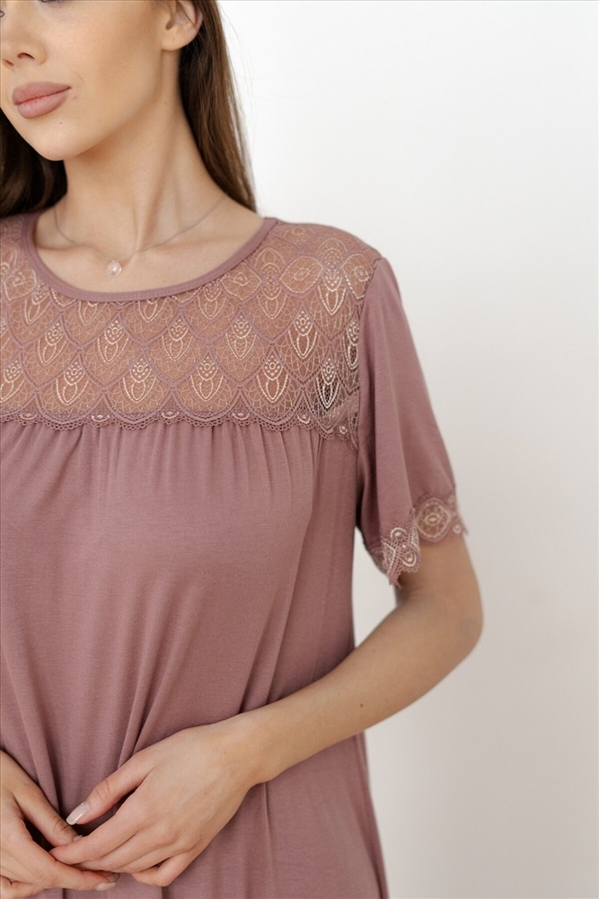 ID товара: 876003 Состав: 92% Вискоза, 8% Эластан Сезон: Демисезон Длина: Удлиненная Фасон: Свободный крой Рукав: короткие Основная ткань: Вискоза Стиль: Повседневный Страна бренда: Россия Страна производства: Россия Ночная сорочка из вискозы с кружевом в цвет Комментарии к товару