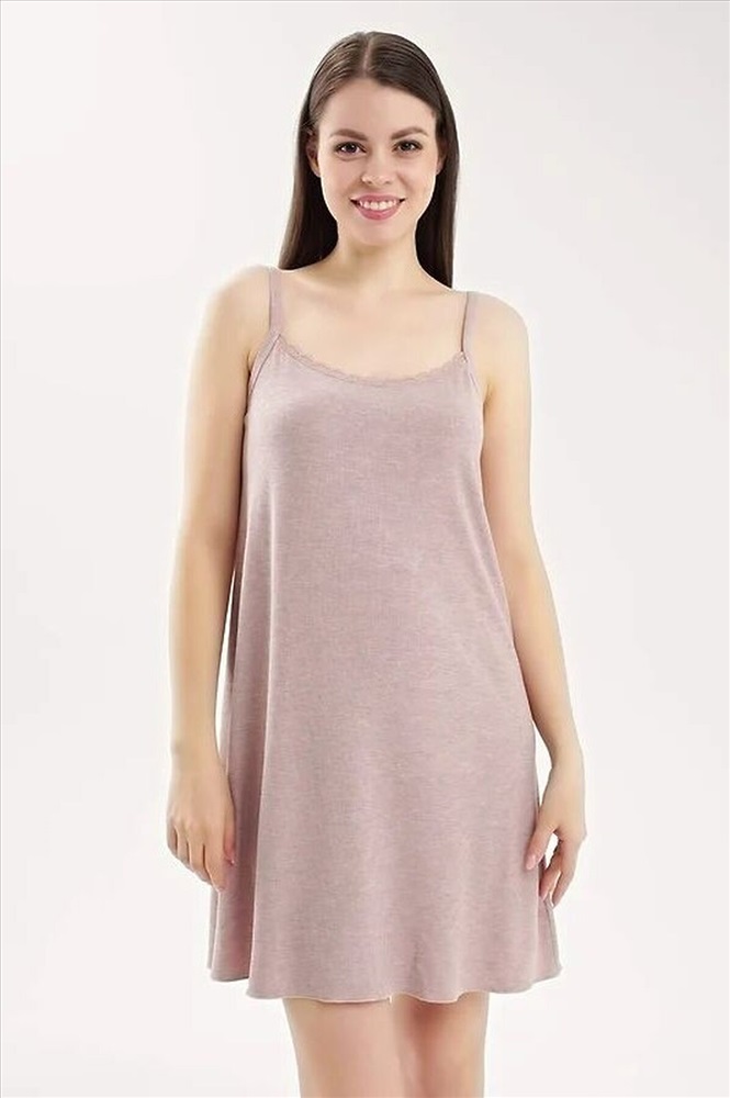 Страна производства: Россия Ночная сорочка для дома и отдыха из вискозного трикотажного полотна кашкорсе лапша. А-образного силуэта длиной чуть ниже колена, на узких бретелях. Спереди по горловине кружево, по спинке окантовка. По низу изделия узкий оверлок.