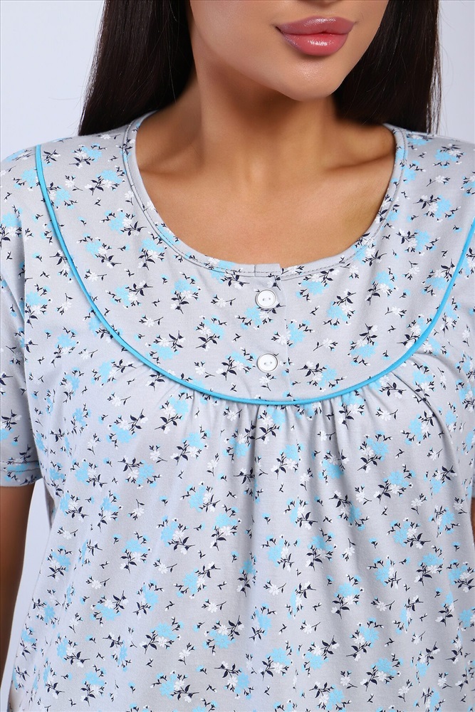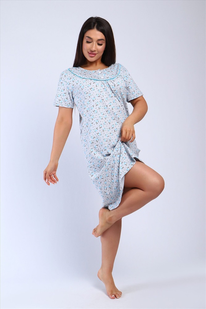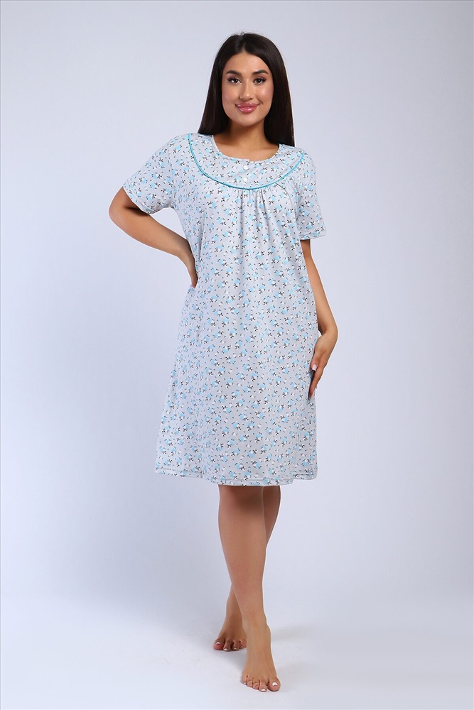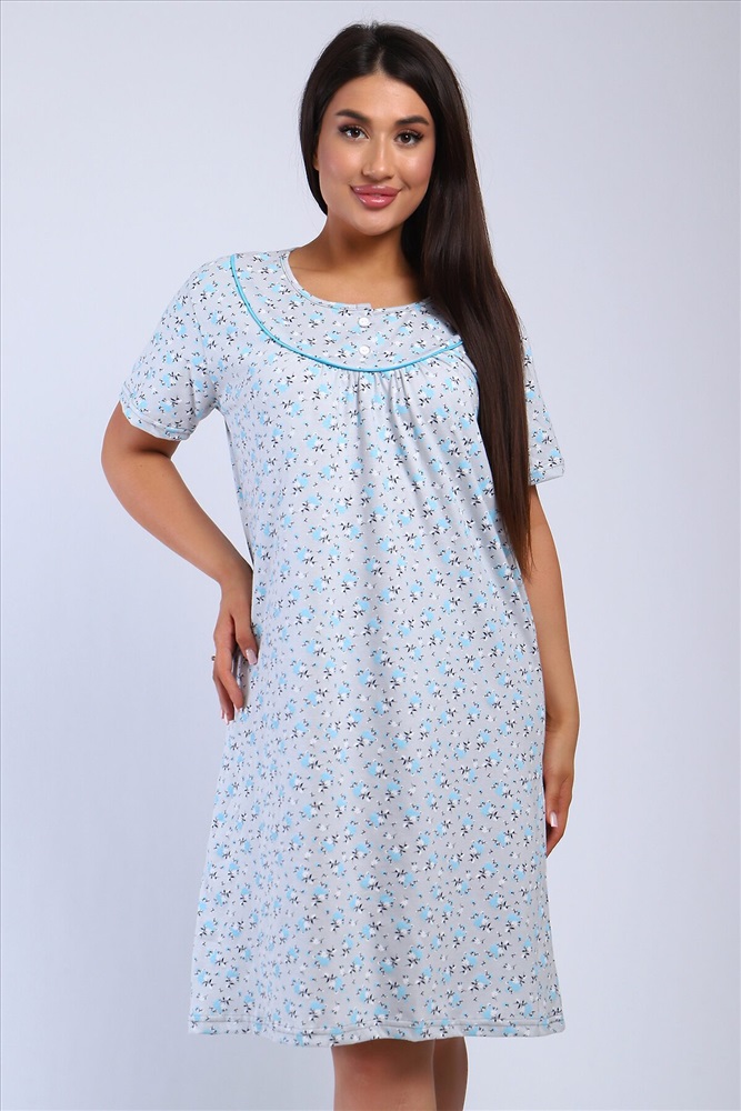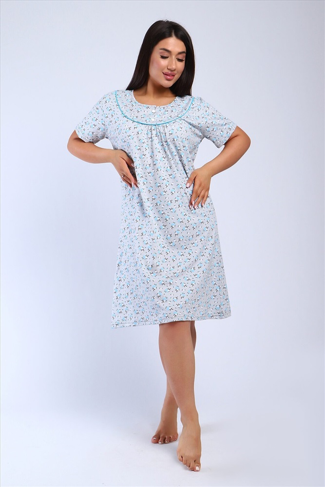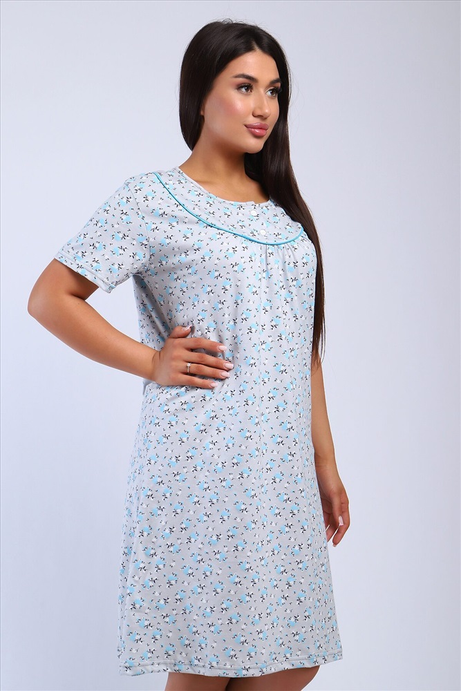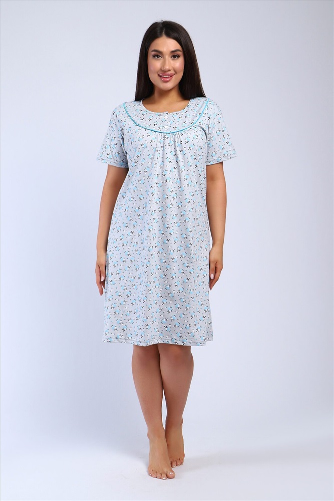 Страна производства: Россия Сорочка женская полуприлигающего силуэта с коротким рукавом. Кокетка с кантом, украшена двумя пуговками