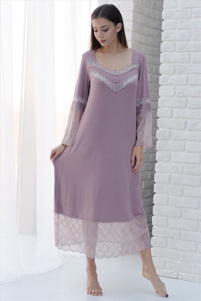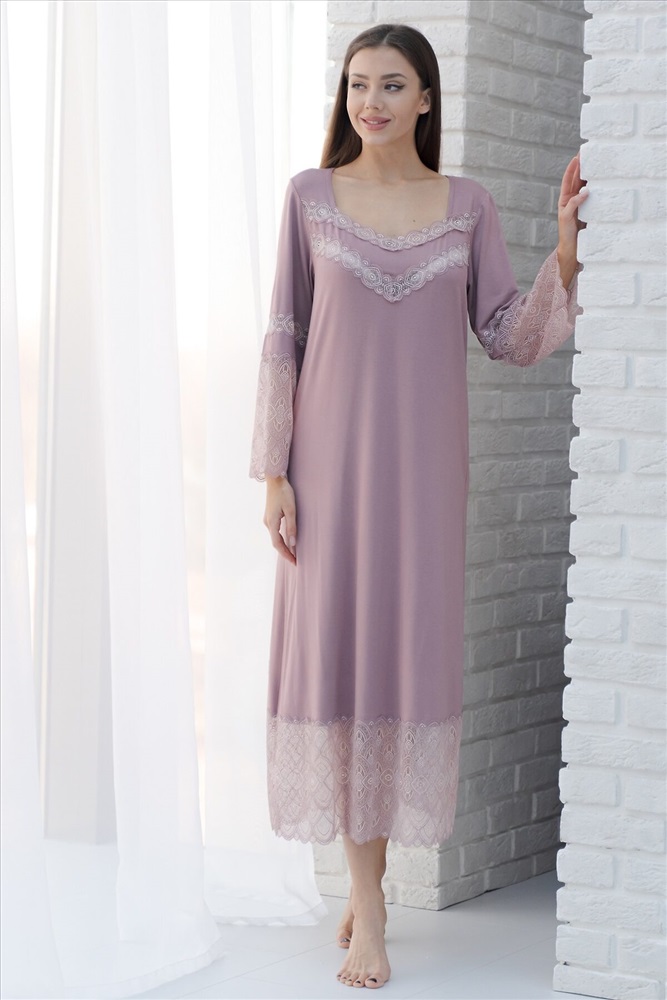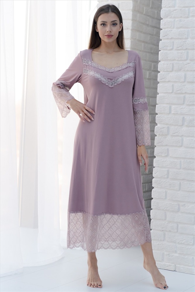 Страна производства: Россия Длинная ночная сорочка из вискозы с кружевом в цвет