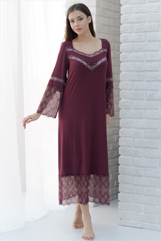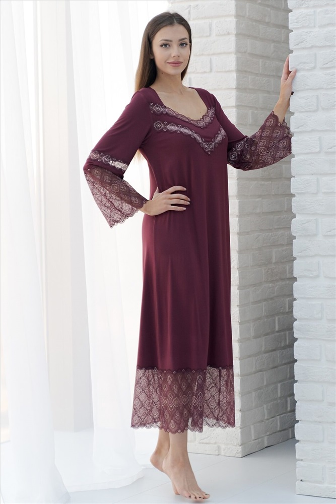 Страна производства: Россия Длинная ночная сорочка из вискозы с кружевом в цвет