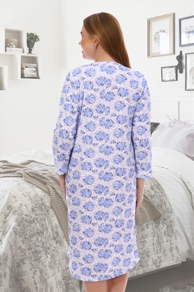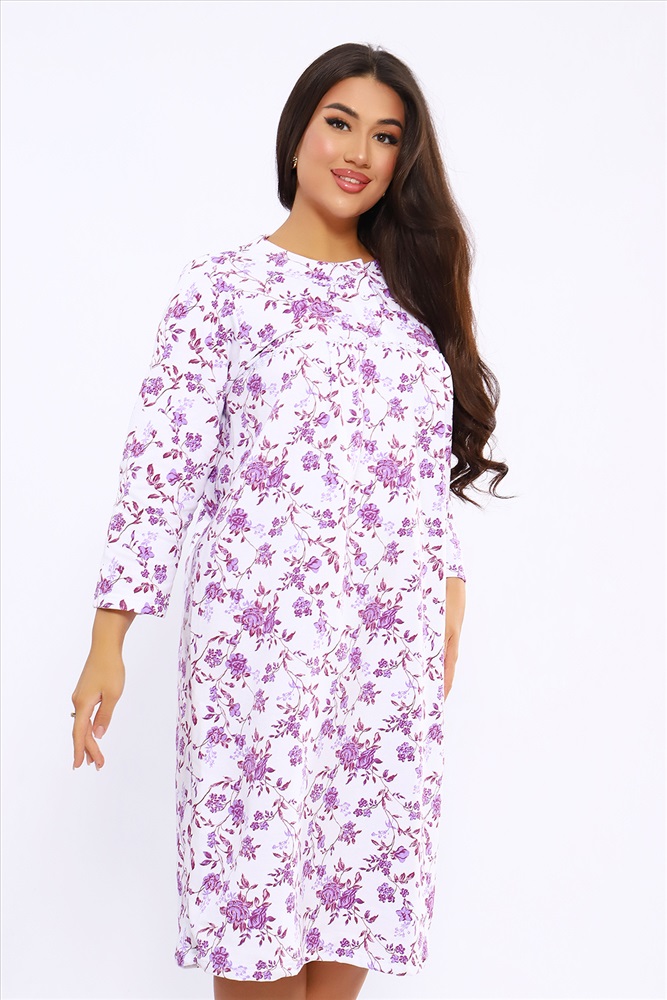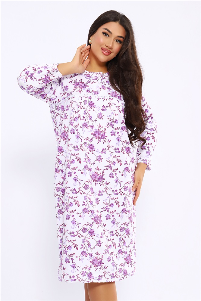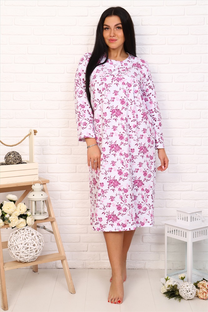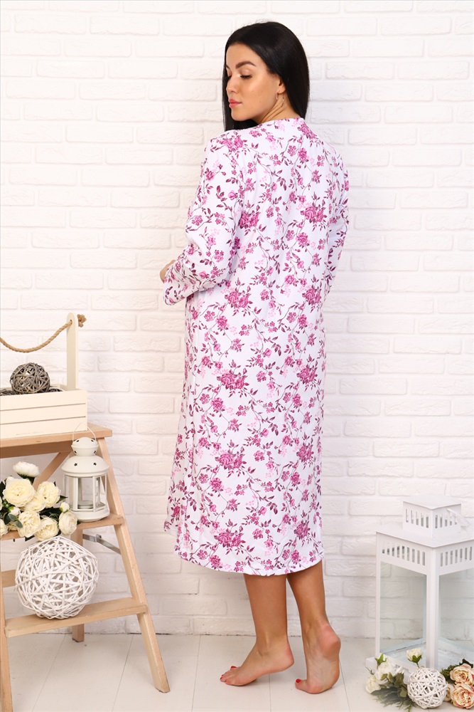 Состав: 100% хлопок Модель: Сорочка Камбрия Тип товара: сорочка Материал: футер 2-х нитка | футер 2-х нитка Бренд: Натали Суслова Длина: длинный Назначение: для дома НДС: 5% Отделка: со складками Рейтинг: Рейтинг 4 и выше Рисунок: разное | цветы Рукав: длинный рукав Сезонность: осень | весна | зима Силуэт: расклешенный | свободный Стиль: домашний Застежка: пуговицы Ночная сорочка из футера с длинным рукавом. На кокетке планка с тремя пуговицами. Воротник декорирован кружевом. По линии отреза лифа небольшая сборка. Таблица размеров и веса