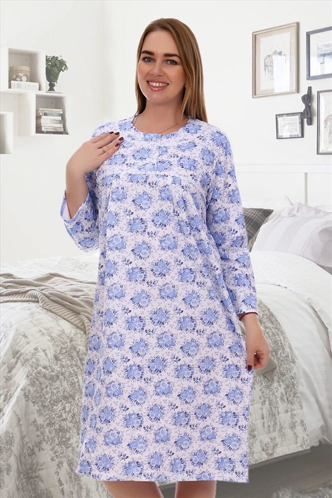 ID товара: 277270 Состав: 100% Хлопок Сезон: Демисезон Длина: Короткое Фасон: Свободный крой Рукав: Длинный Основная ткань: Хлопок | Футер 2-х нитка, это футерная ткань с добавлением двух дополнительных нитей, в состав которой входит полиэстер для улучшения свойств ткани. Особенности- эластичность, мягкость, гигроскопичность, легкость в уходе, комфорт при носке. Стиль: Повседневный Страна бренда: Россия Страна производства: Россия Ночная сорочка из футера с длинным рукавом. На кокетке планка с тремя пуговицами. Воротник декорирован кружевом. По линии отреза лифа небольшая сборка. Комментарии к товару