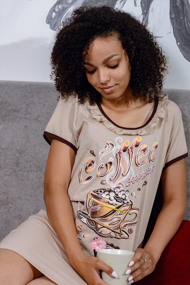 Страна производства: Россия Ночная сорочка с оригинальным кофейным принтом. Горловина оформлена оборкой.