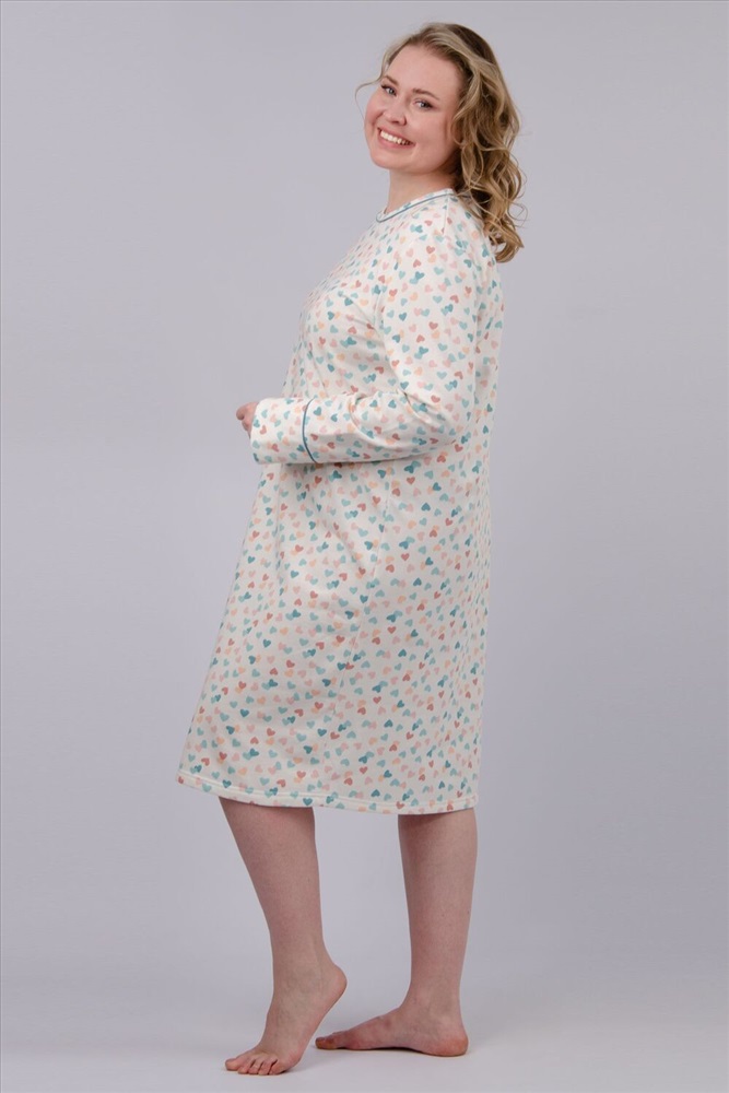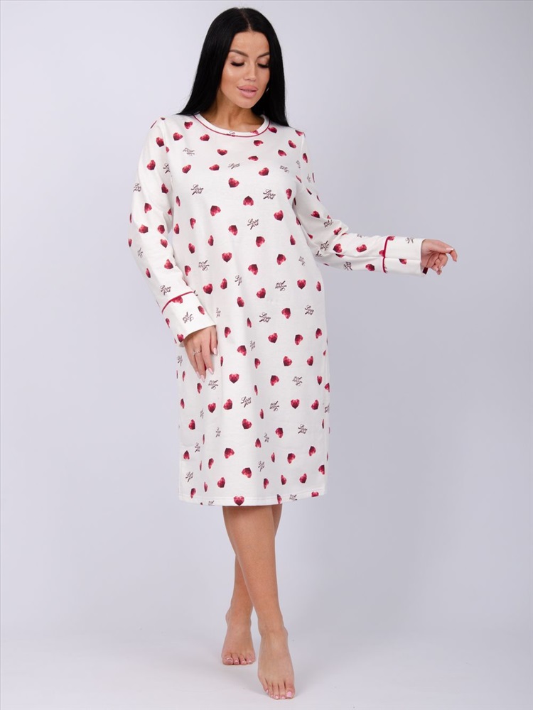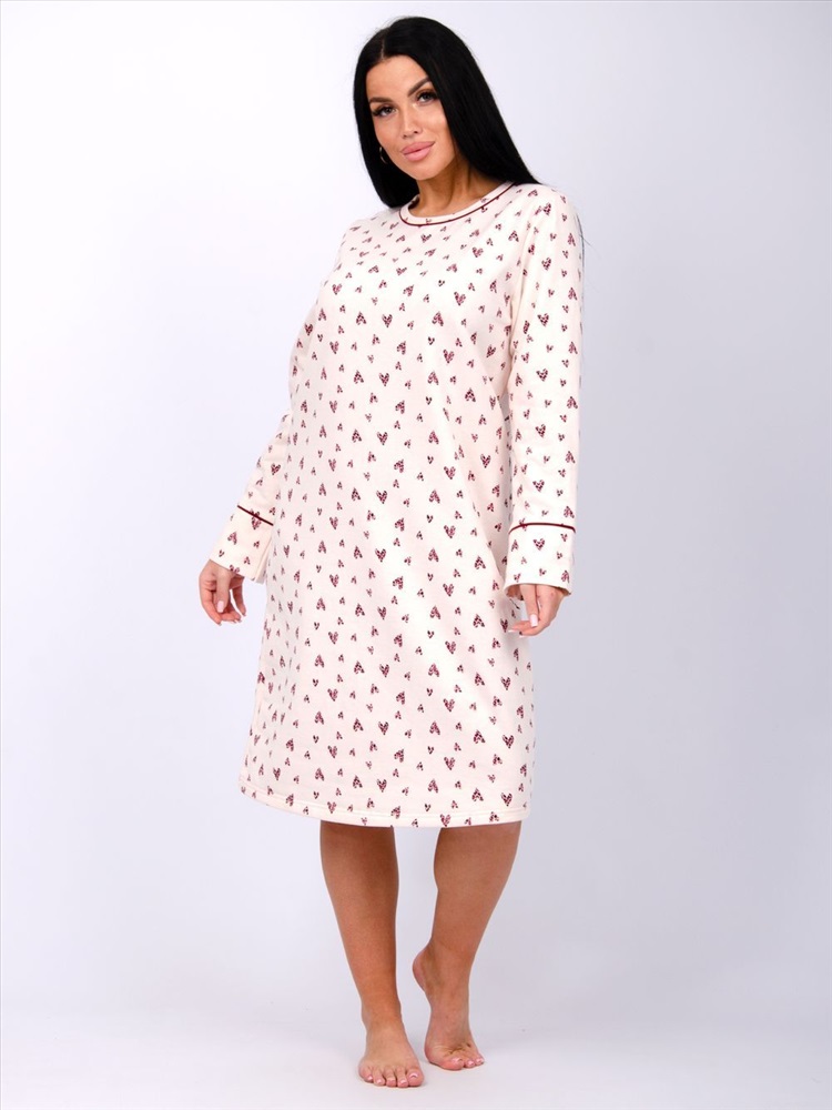 Стиль: домашний Женская сорочка больших размеров - это отличный вариант одежды. Теплая и уютная туника их мягкой хлопковой ткани с начесом. За счет свободного кроя сорочка будет удобна для сна, а благодаря своей длине, а также длинному рукаву не даст замерзнуть в прохладные ночи. Материал футер с начесом - это гипоаллергенная и приятная к телу ткань.