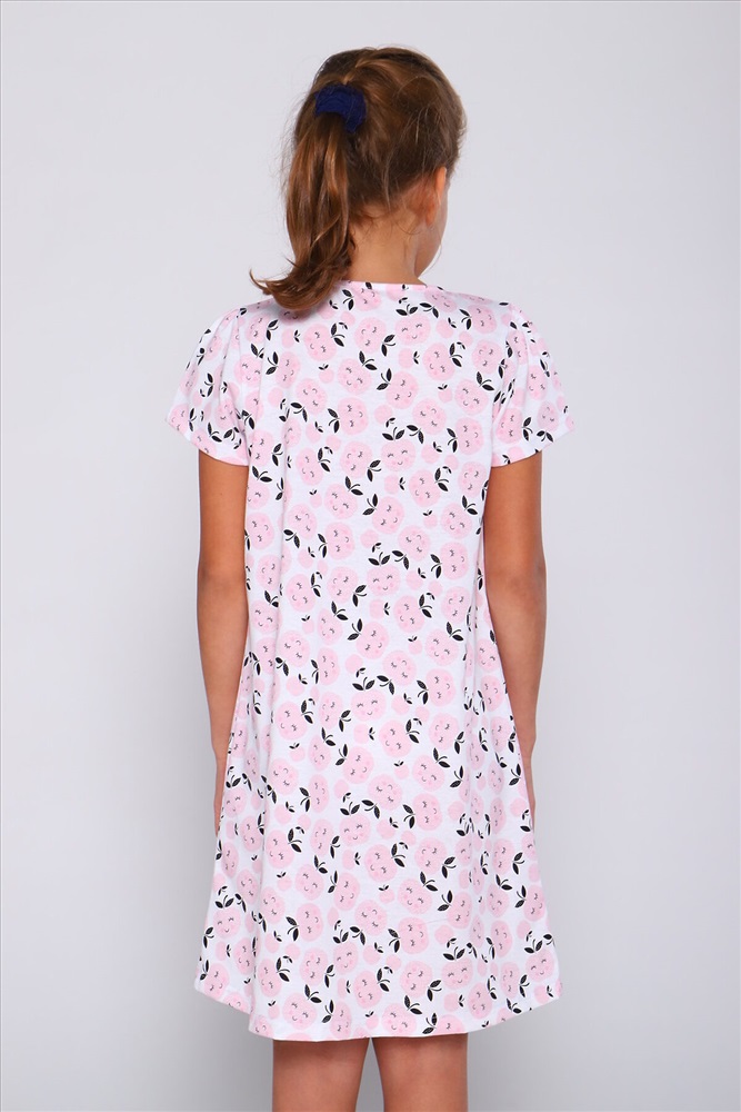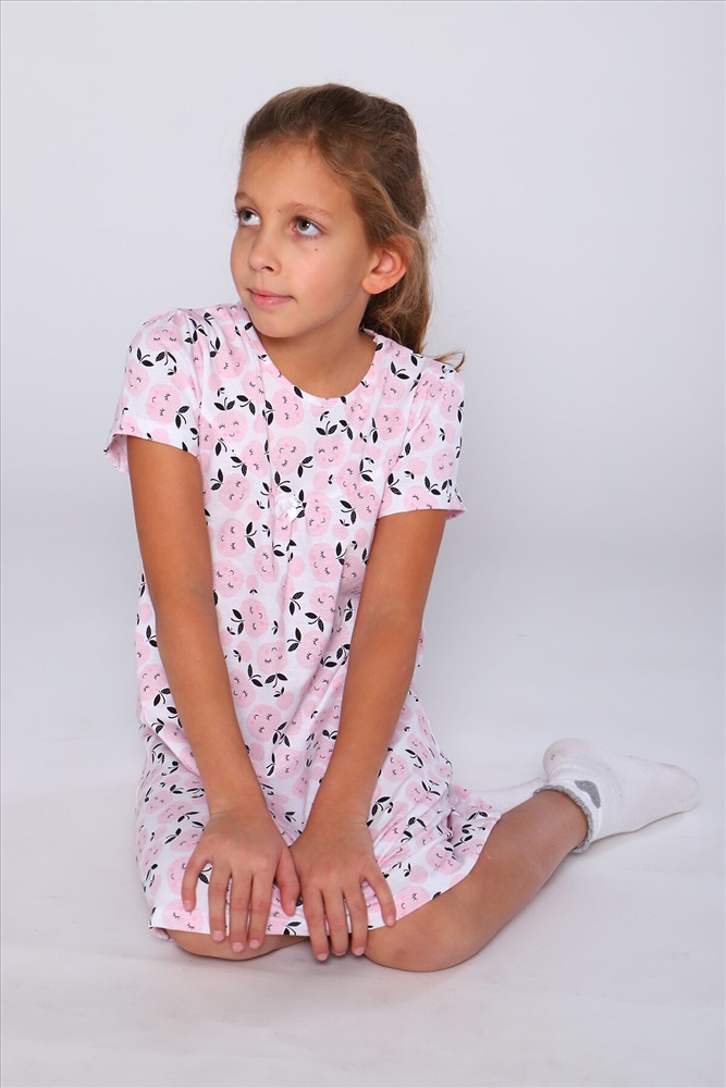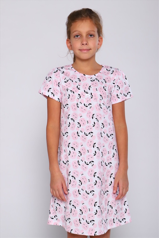 ID товара: 950748 Состав: 100% Хлопок Сезон: Демисезон Длина: Удлиненная Фасон: Прямой Рукав: короткие Вырез горловины: Округлый Основная ткань: Хлопок Стиль: Повседневный Вид ткани: Кулирка Страна бренда: Россия Страна производства: Россия Ночная сорочка для девочек младшего и старшего школьного возраста, из трикотажного полотна с рисунком. Ночная сорочка трапециевидного силуэта, с втачным рукавом. Спереди по центру горловины сборка. Рукав короткий, со сборкой по окату. Низа рукавов и изделия подогнуты. Горловина окантована. По центру горловины переда прикреплен декоративный элемент. Комментарии к товару