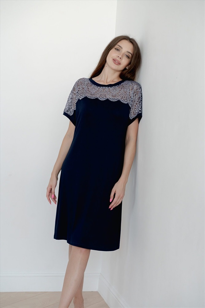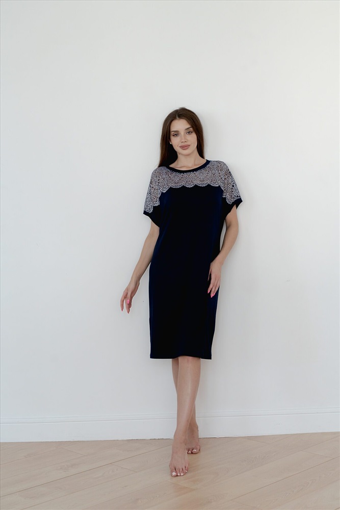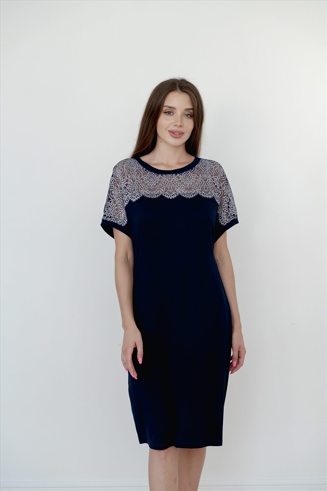 ID товара: 876005 Состав: 92% Вискоза, 8% Эластан Сезон: Демисезон Длина: Удлиненная Фасон: Прямой Рукав: короткие Основная ткань: Вискоза Стиль: Повседневный Страна бренда: Россия Страна производства: Россия Ночная сорочка Нэлли выполнена из вискозы с кружевом в цвет Комментарии к товару