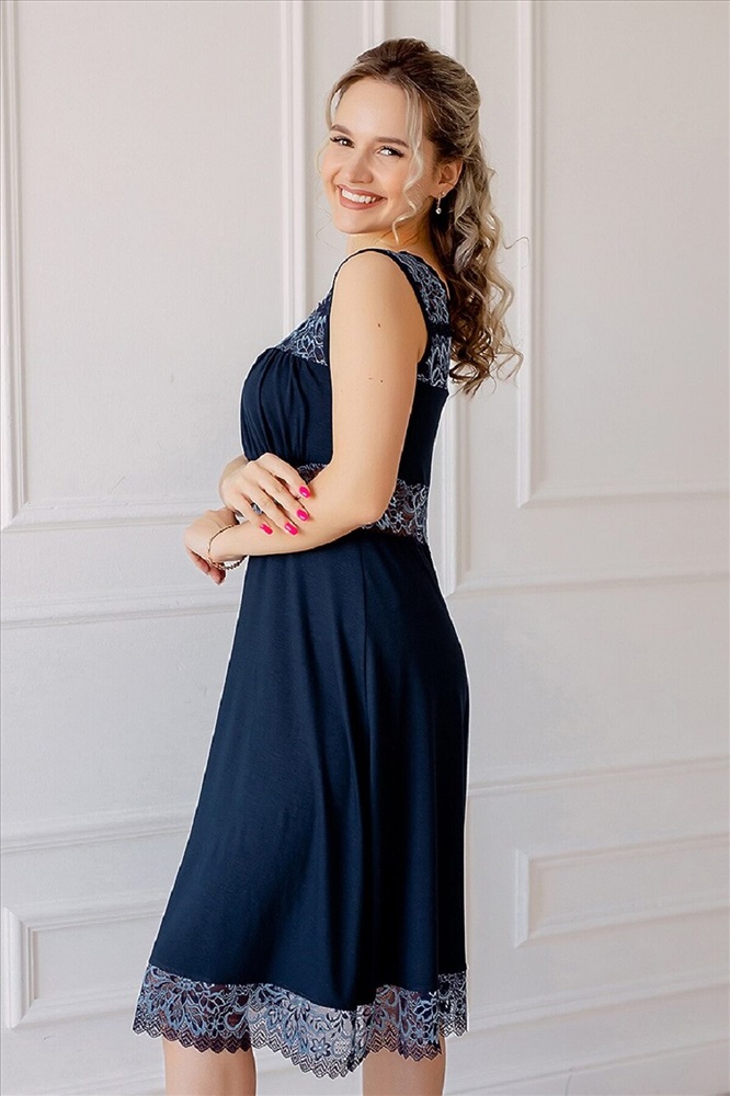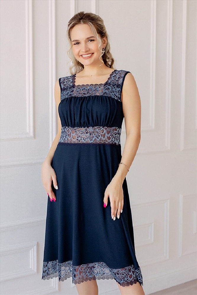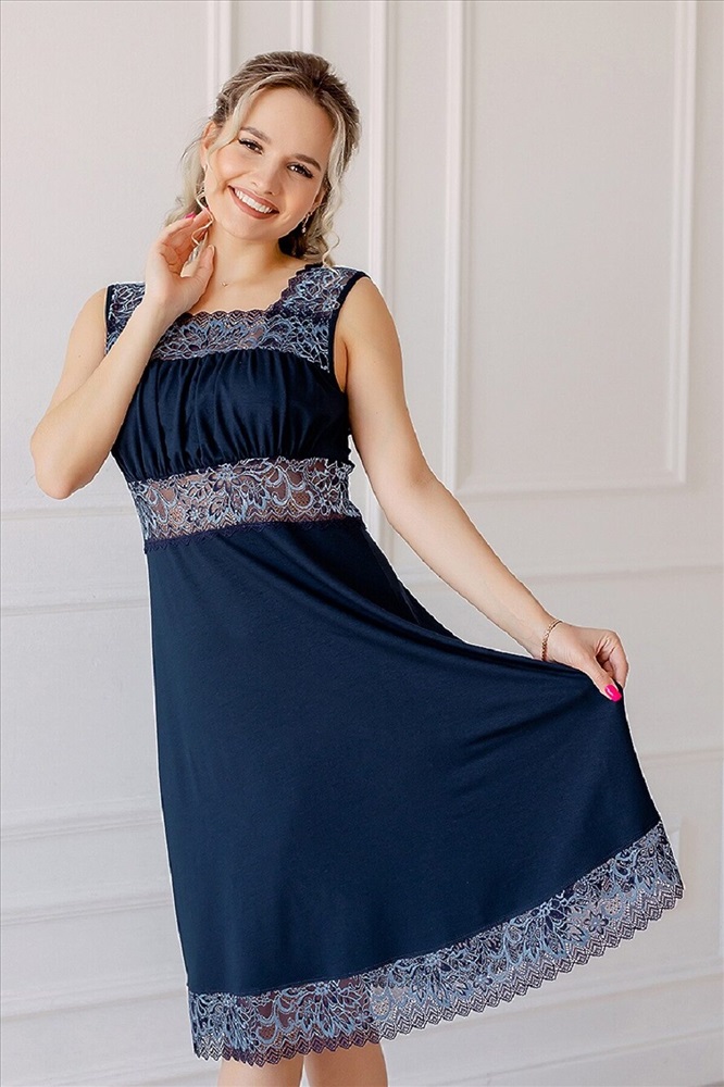 Женская ночная сорочка из вискозы прямого силуэта, расклешенная к низу от груди, длиной до колена, на широких кружевных бретелях. На детали переда выполнена двойная кокетка, верхняя кокетка задрапирована. Благодаря двойной кокетке и драпировке, очень хорошо поддерживает грудь. Сорочка декорирована эластичным кружевом под кокеткой, по горловине, проймам и низу. Ночная рубашка женская вискоза (ночнушка) из нежнейшей вискозы премиум качества. Ночная сорочка представлена большим размерным рядом с 42 по 56 размер. Идеальная посадка ночной рубашки будет идеально смотреться на любой фигуре. Вискозное волокно, содержащие эластан, не подвержено усадке после стирки и при правильном уходе долго сохраняет форму. Воздухопроницаемость материала гарантируют комфортный сон, сорочка очень удобна в носке дома или на даче. Рубашку можно использовать как сорочку и как одежду для дома. Порадуйте покупкой себя или сделайте подарок близким.