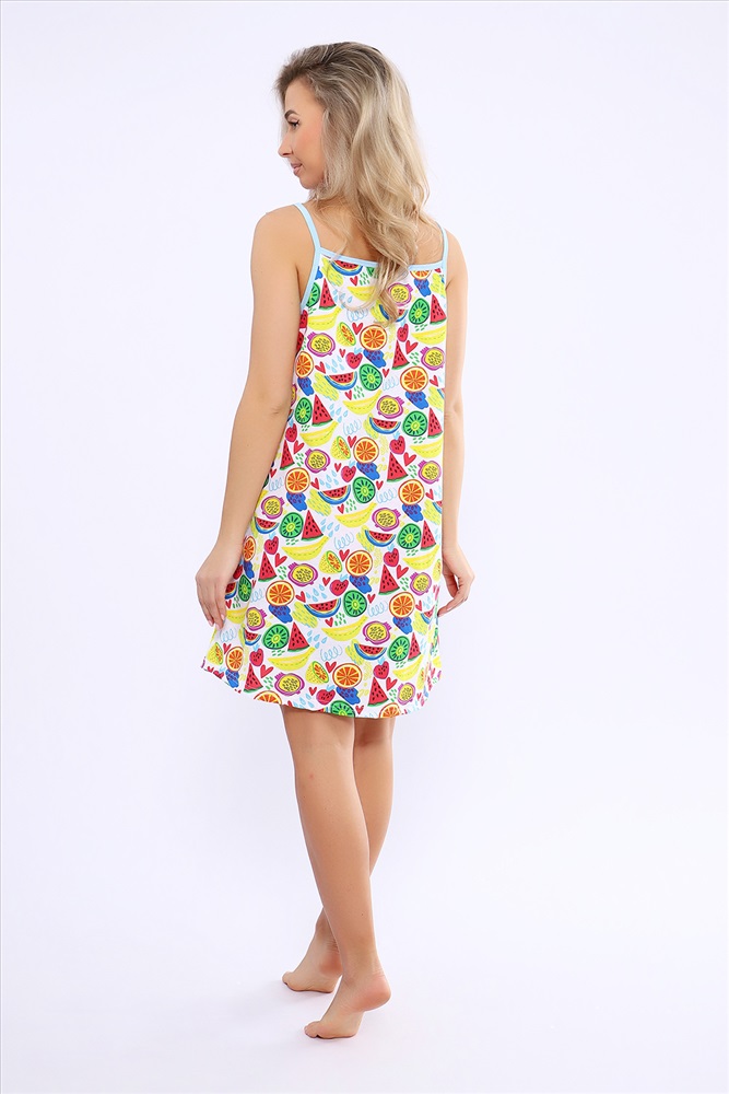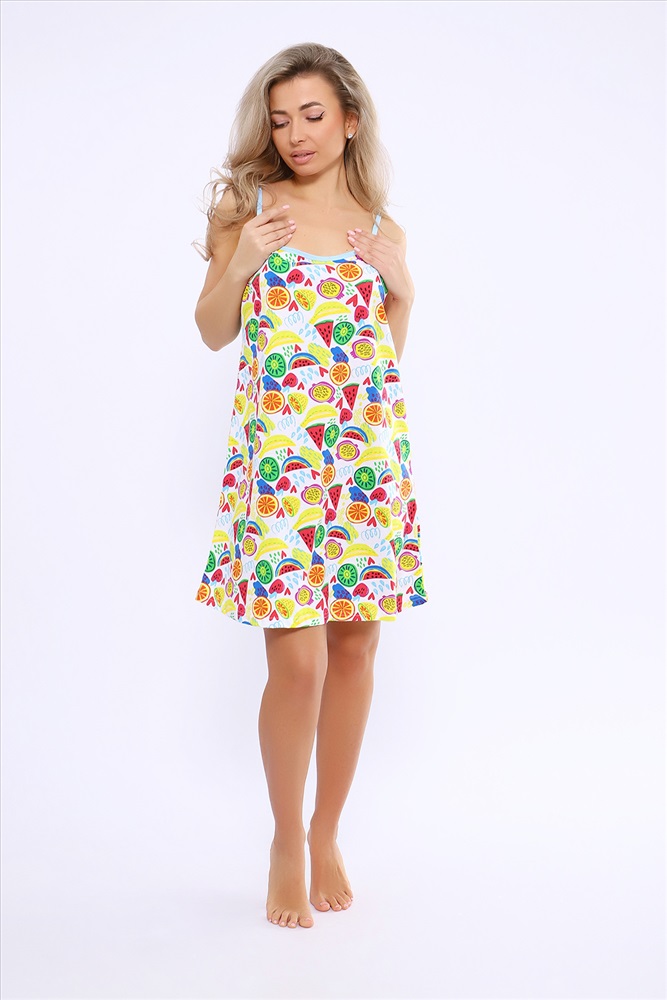Стиль: домашний Сорочка женская на бретельках. Яркая расцветка с тропическими фруктами и ягодами.