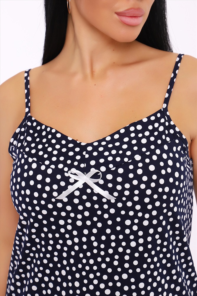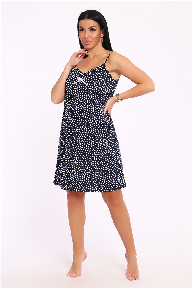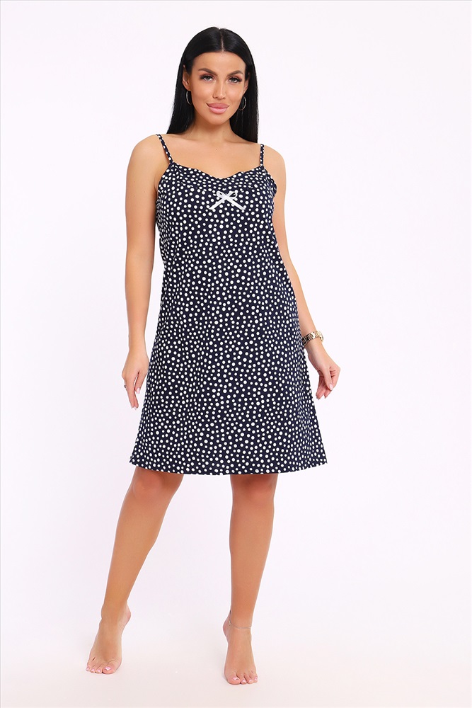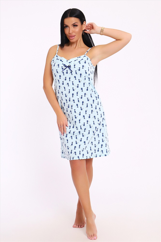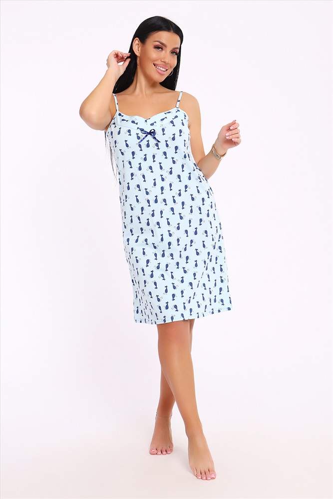 Стиль: домашний Сорочка женская на узких бретелях из хлопкового трикотажа. Модель слегка приталенного силуэта, на груди кокетка. Комфортная, приятная к телу сорочка создаст вам уют и хорошее настроение.