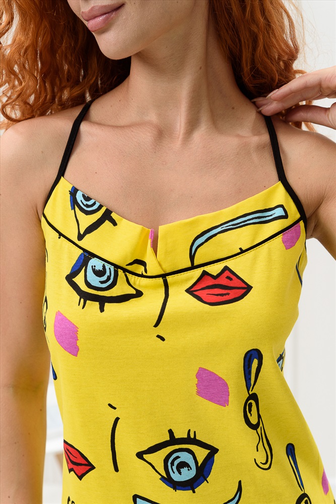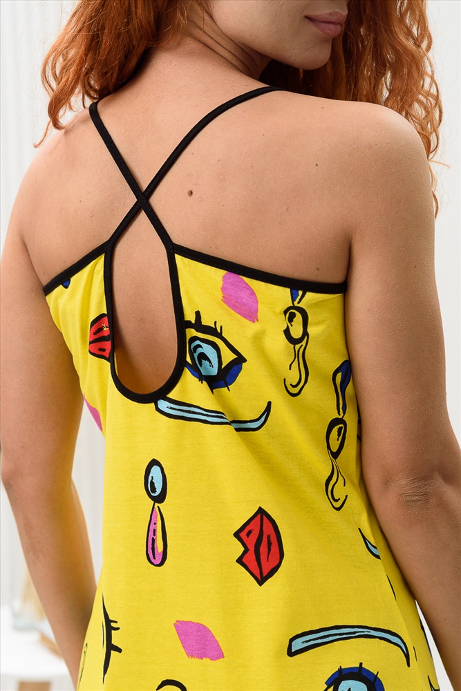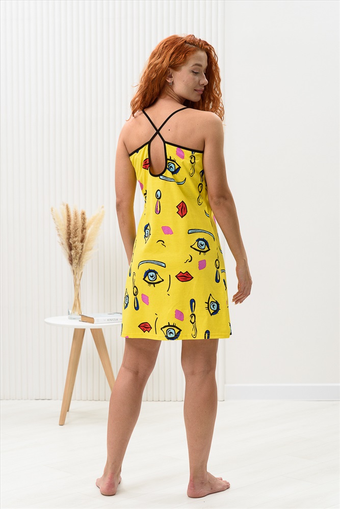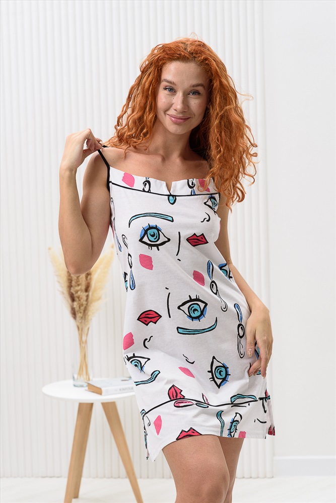 Состав: 100% х/б Модель: Сорочка женская 8437 Тип товара: сорочка Материал: кулирка | кулирка Бренд: Натали Суслова Длина: короткий Назначение: для дома Рисунок: разное Рукав: без рукава Сезонность: лето | осень | весна | зима Силуэт: полуприлегающий Стиль: домашний | молодежный Сорочка на бретелях полуприлегающего силуэта, с разрезами в нижней части боковых швов, длиной выше колена. На полочке вверху обработан фигурный вырез. Проймы и бретели обработаны бейкой из отделочного полотна. Таблица размеров и веса