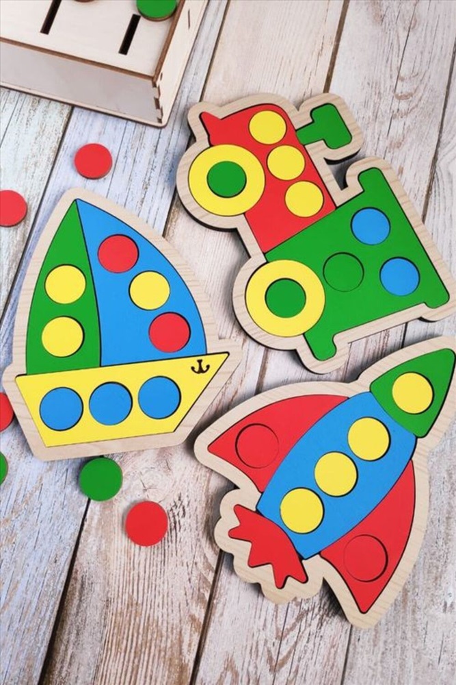 Стиль: для школы Артикул: 7008 Размер: 215*207*43 мм Вес: 580 г Материал: березовая фанера, ХДФ, краска В комплекте: сортер, 3 рамки, 3 одноцветных вкладыша, 3 набора цветных элементов пазла, 40 кружочков (10 штук каждого цвета) Многофункциональная игра. Рекомендуем для детей младшего возраста. Разложите рамки ракеты, парусника, паровозика. Достаньте вкладыши и попросите малыша найти для каждой фигурки свое место. Положите перед малышом рамку одной из фигур и цветные части пазла к ней. Попросите найти для каждого элемента свое место в рамке. Получилось? Добавьте, вторую рамку с цветными элементами, затем - третью. Сортируйте кружочки по цветам и вкладывайте их в элементы, соответствующие по цвету. Дайте волю фантазии малыша - пусть он раскрасит фигурки цветными кружочками на свой вкус. Используйте кружечки для изучения счета и цветов. Перемешайте кружочки, устройте соревнования - кто быстрее отправит все кружочки в сортер. Попросите малыша придумать забавную историю о том, как он отправился в увлекательное путешествие на паруснике, ракете или паравозике. Обводите фигурки на бумаге и раскрашивайте. Игра развивает мелкую моторику, внимание, усидчивость, логическое мышление, воображение, познавательный интерес к окружающему миру.
