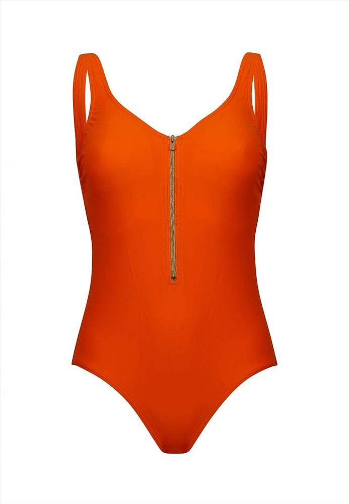 Купальник со встроенными корректорами, поддерживающая резинка под грудью, молния по центру передней детали.
