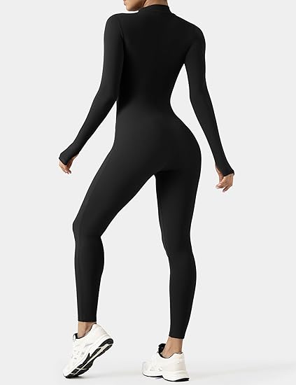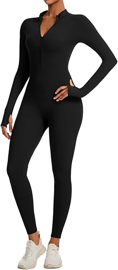 speerise Women Long Sleeve One Piece Workout Jumpsuit Romper Bodysuit Tummy Control Body Suits Jumpers