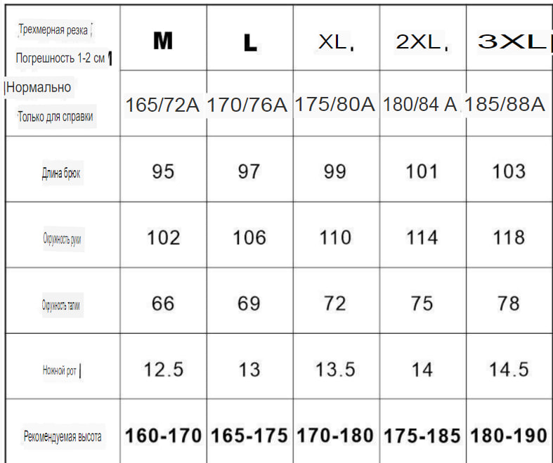 Размер: M (50-60 кг), L (60-70 кг), XL (70-80 кг), 2XL (80-90 кг), 3XL (90-100 кг)