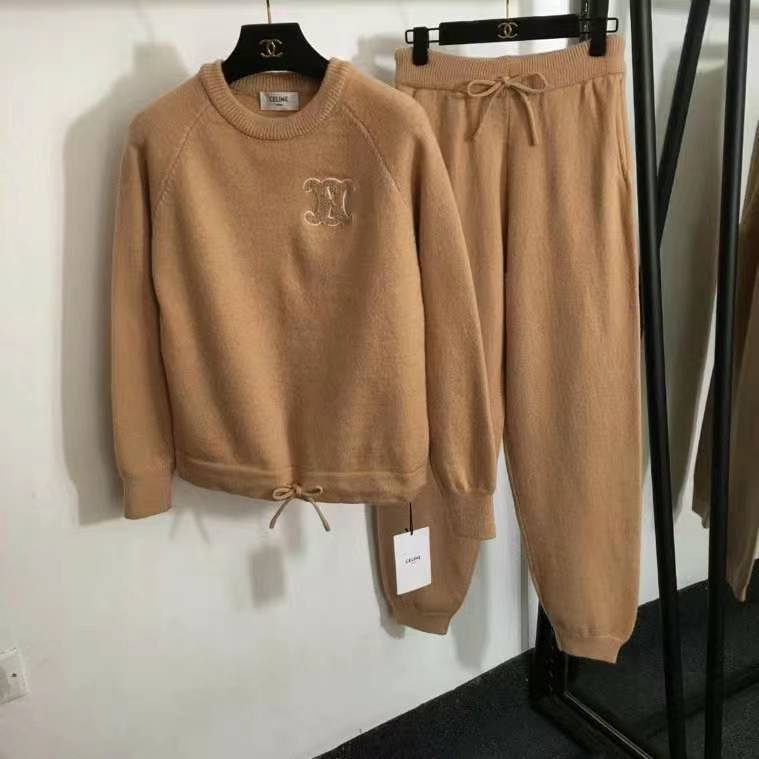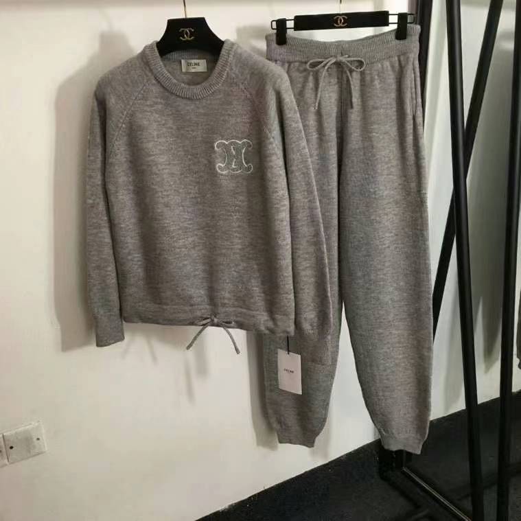 спортивный костюм Celin, плюшевый вышитый логотип на груди, пуловер на талии с кулиской, свитер с длинными рукавами + повседневные леггинсы на кулиске, серый, хаки, [один размер подходит всем, обхват груди 92, длина рукава 66, длина одежды; 57; талия 64, резинка, длина 104]