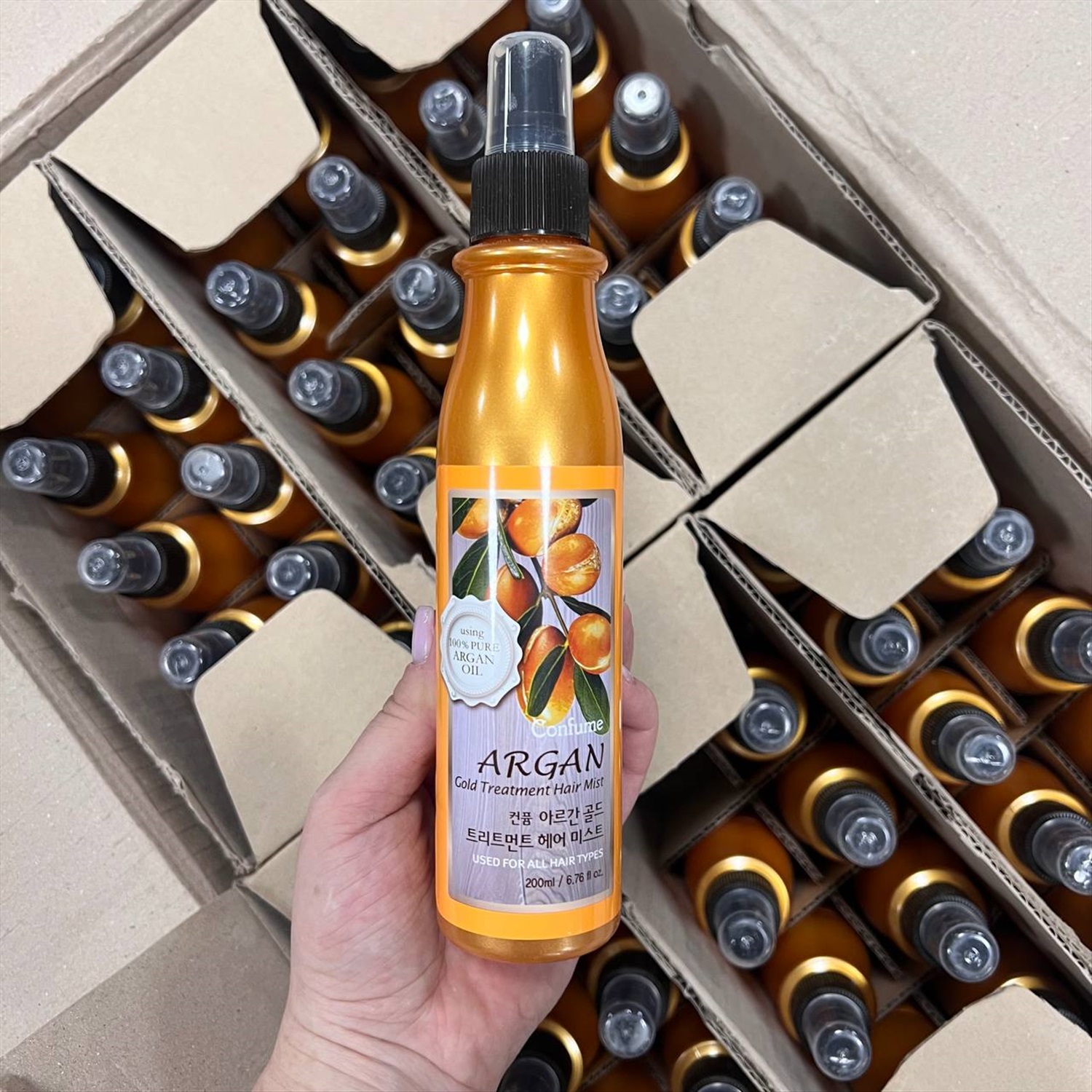 Спрей-кондиционер создан для спасения окрашенных, пушащихся и непослушных локонов. Он содержит масло арганы и особый фруктовый комплекс: ягоды асаи, мангостин, облепиха, ягоды годжи и нони. Такой комплекс способствует глубокому восстановлению волос, возвращает блеск и упругость. Золото в составе защищает от термовоздействия, поддерживает цвет и защищает от преждевременного старения. А лимонная кислота контролирует излишнюю выработку кожного себума, уменьшая быстрое загрязнение кожи головы и потерю объема.