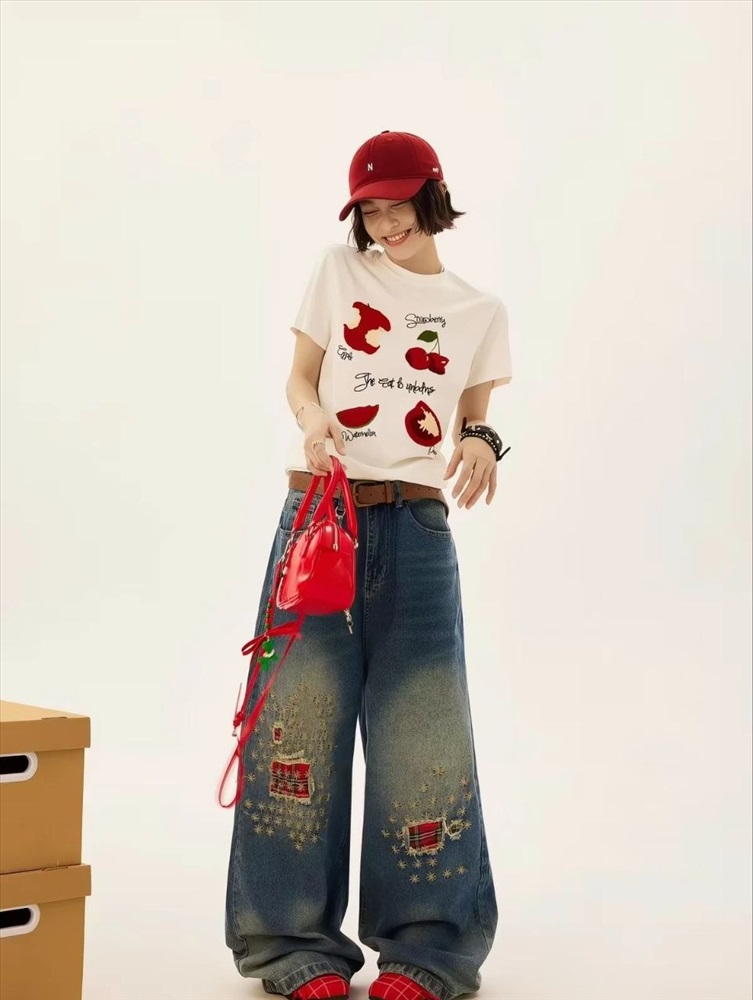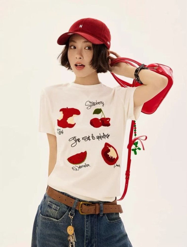 Стильная футболка с яркой вышивкой ягод и фруктов 🍒