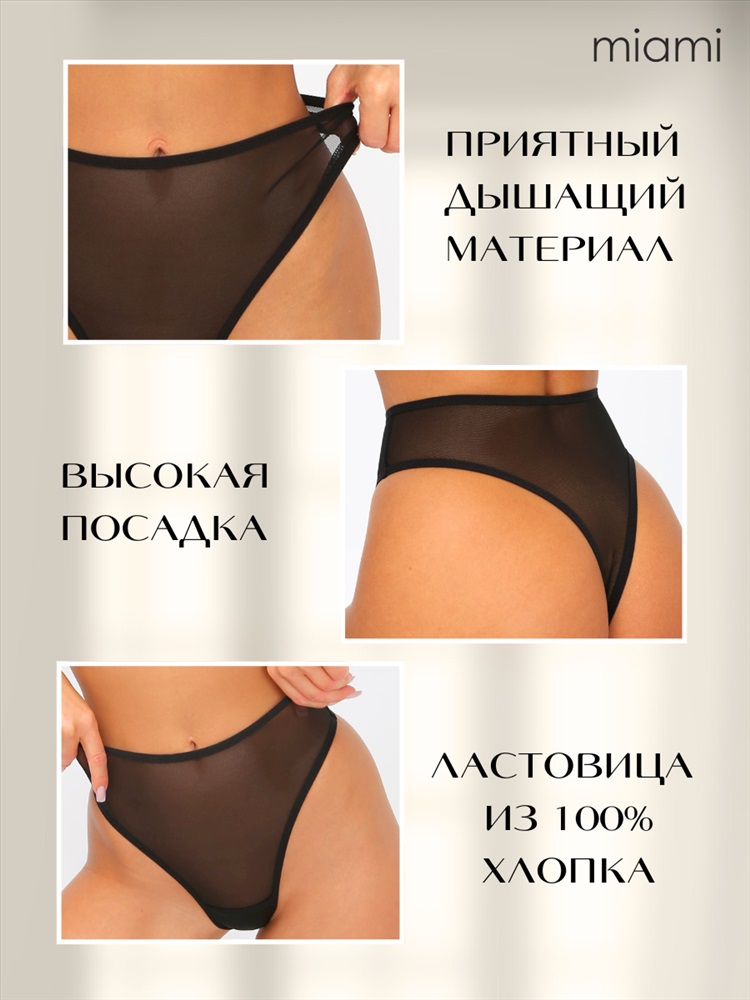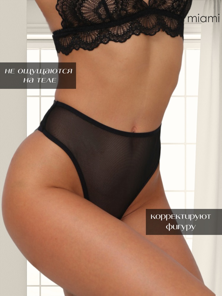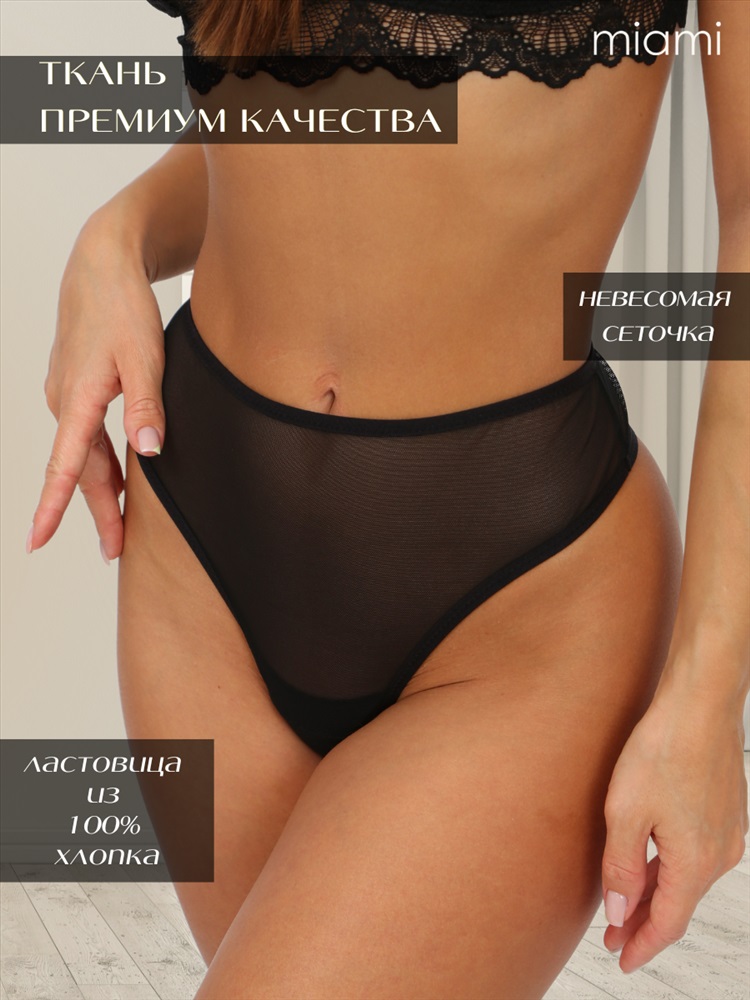 Стринги прозрачные с высокой посадкой чёрные