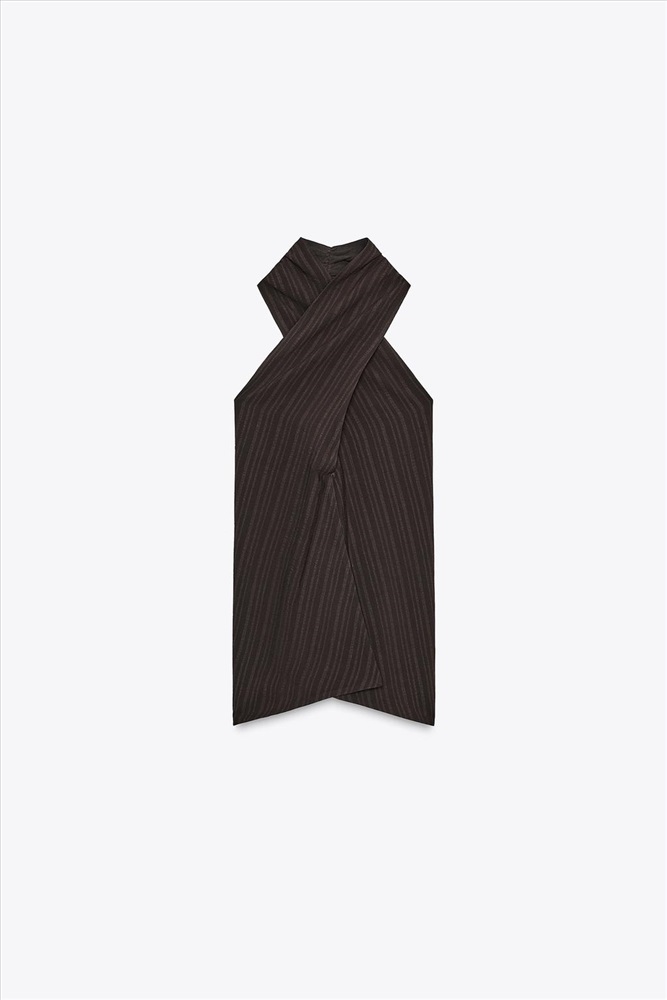 Halter neck top with a crossover design. Open back. Hem with front slit. Button fastening at the back. COMPOSITION, CARE & ORIGIN COMPOSITION OUTER SHELL 79% viscose LINING 100% cotton CARE Caring for your garments to extend their useful life. Lower temperature washes and delicate spin cycles are gentler on garments and help to protect the colour, shape and structure of the fabric.